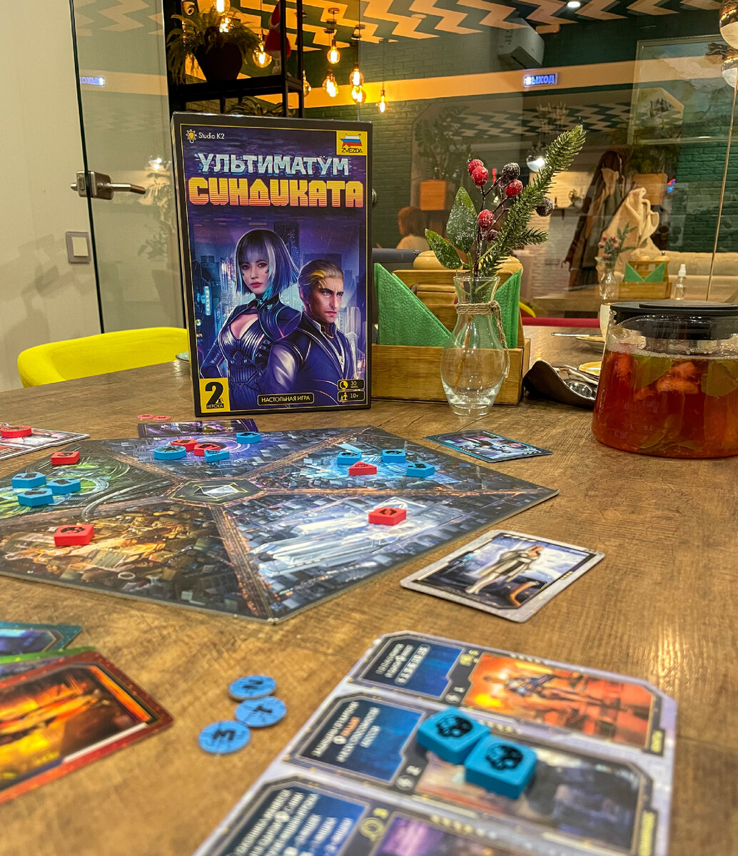 Наверное, ни для кого не секрет, что я люблю дуэли — за направленную агрессию и соперничество. Давно хотела закрыть гештальт по выпускам дуэльной серии «Звезды», и вот если в «Путь лепестка», «Сумерки Венеции», «Джекила и Хайда» я сыграла уже давненько, то вот «Ультиматум Синдиката» в своё время прошёл мимо меня — то ли из-за темы, то ли из-за больших объёмов других вышедших игр в то же время. И вот мы поиграли с Людой в разные варианты игры — и хочется обратить ваш взгляд на эту дуэльку, которая, по моему мнению, заслуживает внимания, тем более что это, как оказалось, отечественный проект. По настроению игра чем-то напоминает мне «Двор чудес» — то есть вы ставите в локации своих юнитов, которые имеют специализацию и особенности. Например, охотники сильны, только если находятся в локации одни из команды, на коммандос не работают отвратительные эффекты карт гильдий, а босс только один, но у него разовая сильная способность. Ход в игре состоит из выставления юнита на поле в одну из 5 обл