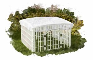 Вольеры для щенков должны быть безопасными, чтобы малыши не смогли повредить себя. При появлении потомства часто приобретают матерчатые варианты ограждений. Они мягкие и обеспечивают сохранения тепла. Использовать такое приспособление разрешается как на улице, так и дома. Производитель предусмотрел зону для миски, также есть крыша из сетки и дно из непромокаемой ткани.