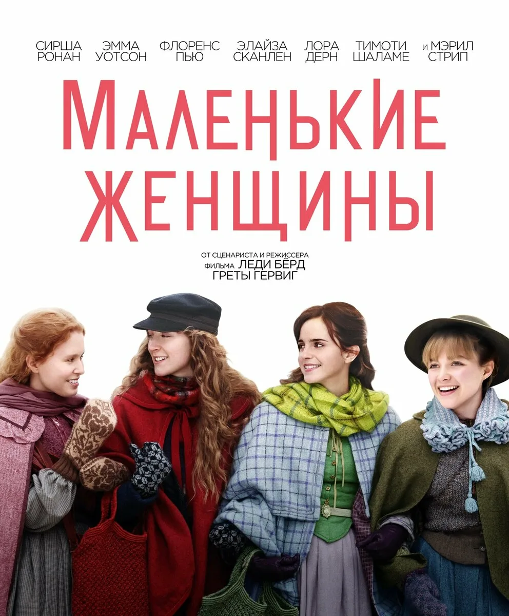 Маленькие женщины — американский драматический фильм 2019 года режиссёра Греты Гервиг. Фильм является экранизацией одноименного романа. Это далеко не первая экранизация, но другие фильмы я не смотрела. Фильм длиться 2 часа 15 минут. Сюжет В фильме нам рассказывают историю четырех сестер: Мэг, Джо, Бетси и Эми. Девочкам приходятся тяжело, так как их отец находится на войне, а мама постоянно работает, чтобы прокормить их. При этом она же старается помогать и бедным соседям. На одном из балов, Джо знакомится с парнем по имени Лоренс. И между ними завязывается дружба. Поэтому Лори начинает часто гостить у девушек. А дедушка юноши привязывается к Бетси, потому что та напоминает пожилому мужчине его погибшую дочь. Мэг влюбляется в репетитора Лори. Между ними сначала завязываются отношения, а затем они решают сыграть свадьбу. Джо, как самая свободолюбивая сестра, пытается ее отговорить. Но Мэг решает посвятить всю свою жизнь семье. После их свадьбы Джо пытается пробиться в писательском дел
