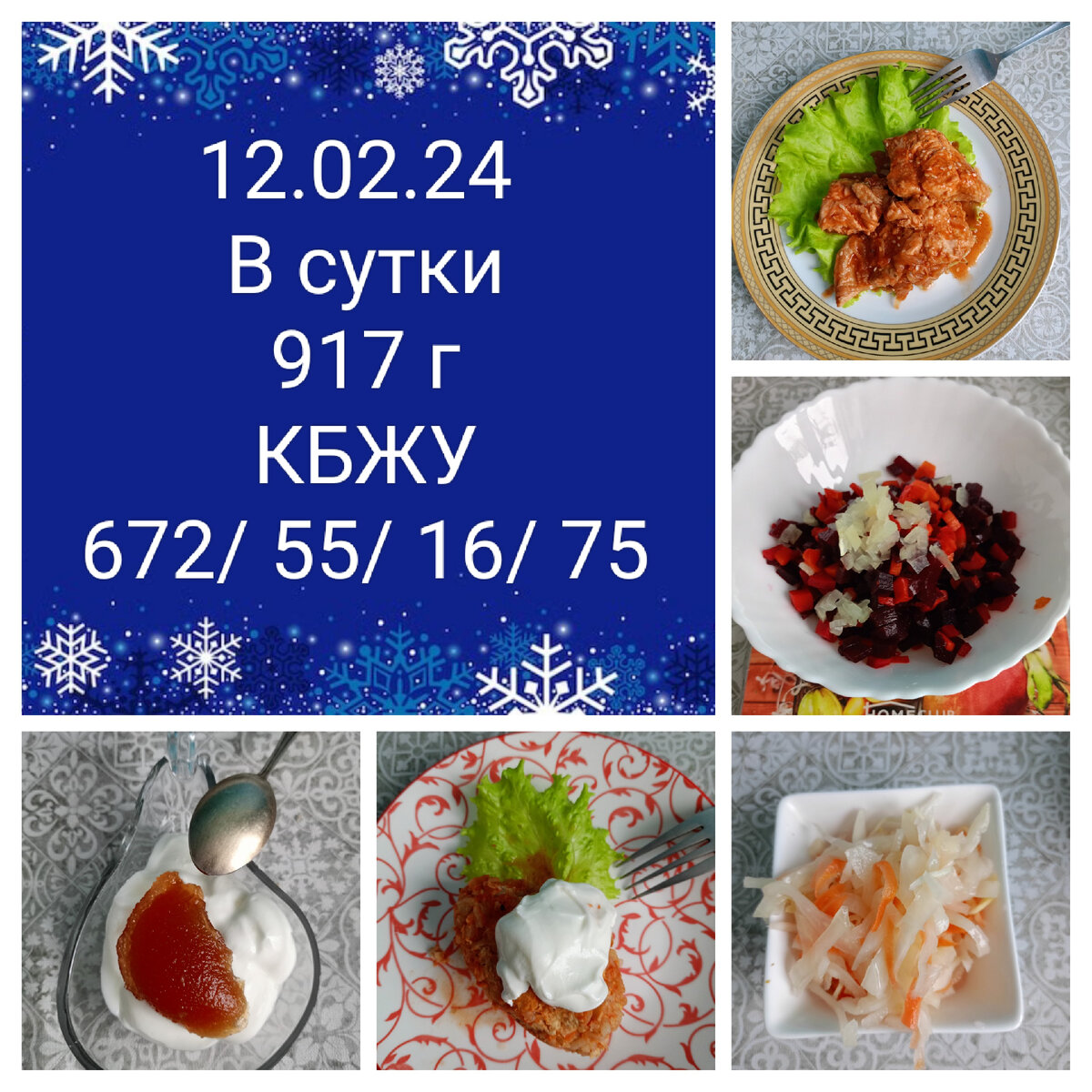 Меню 12.02.24 | 350-й день моего онлайн похудения на питании с суточной нормой калорий 500-800 кк