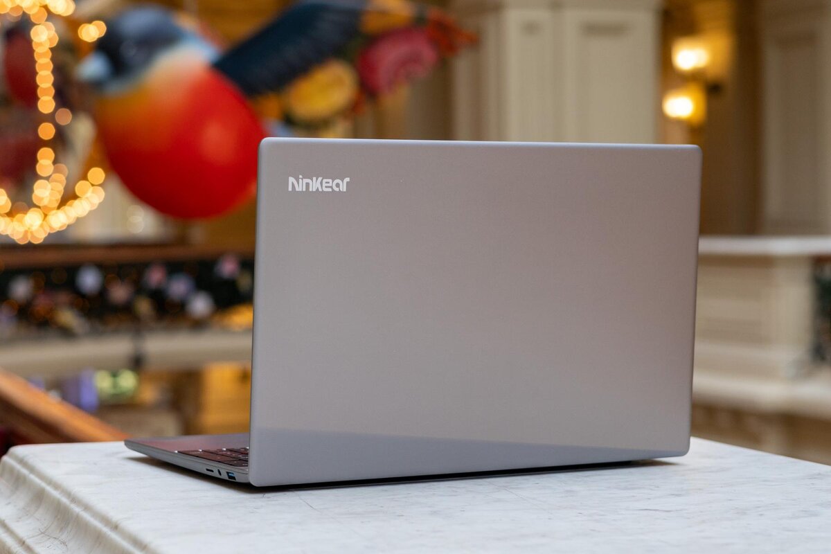 По дизайну производитель не предлагает ничего нового – Ninkear A15 Plus это серебристый ноутбук с металлическими крышками и с вполне хорошим качеством сборки. Конечно, местами использовался и матовый пластик. Над экраном видим примитивную камеру с разрешением HD, рядом с которой только микрофон – всё это без шторки и даже без индикатора.