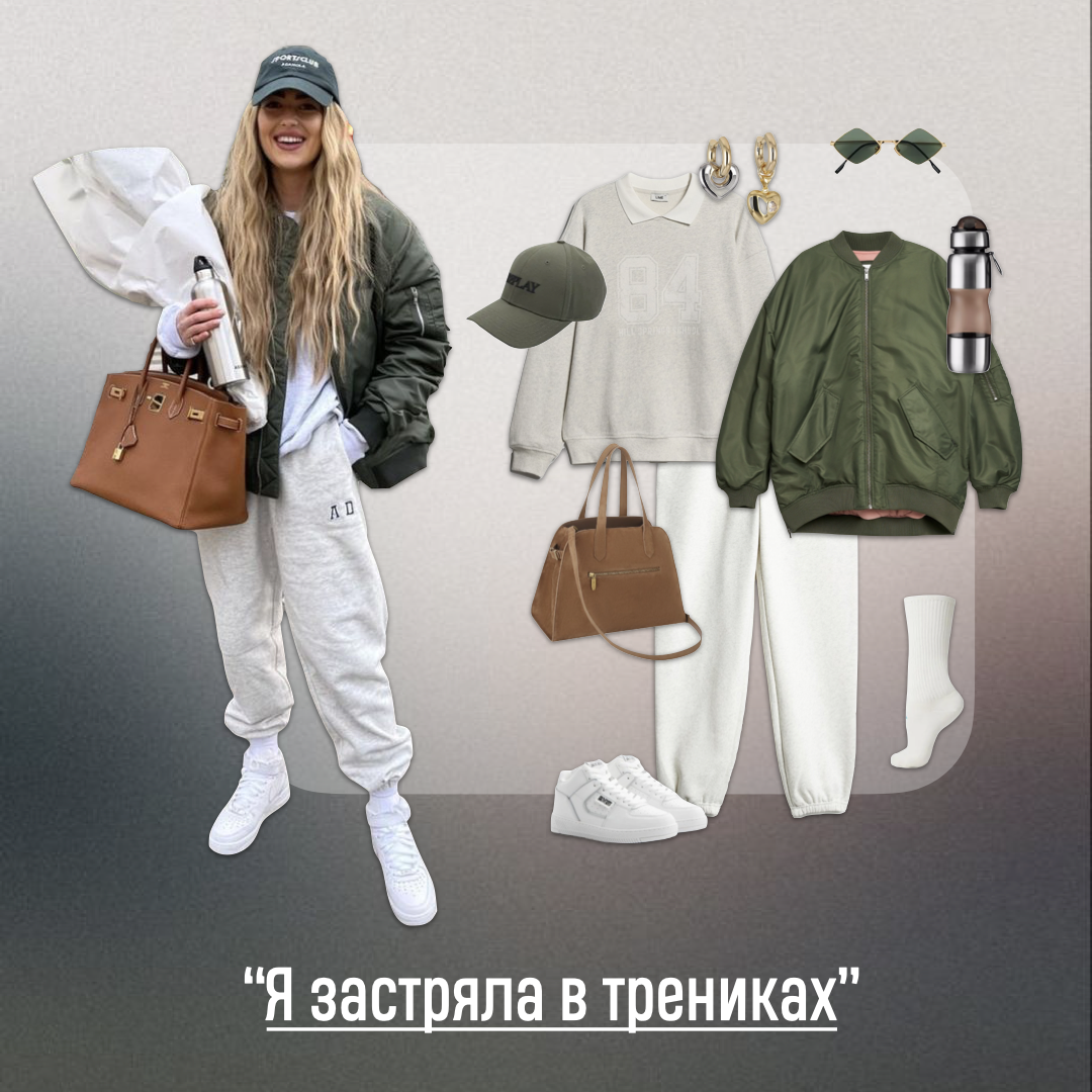 🎨четкое цветовое решение: если треники цветные, сделайте остальные элементы либо монохромными, либо в тон. 1-2 цвета на образ – больше не нужно.