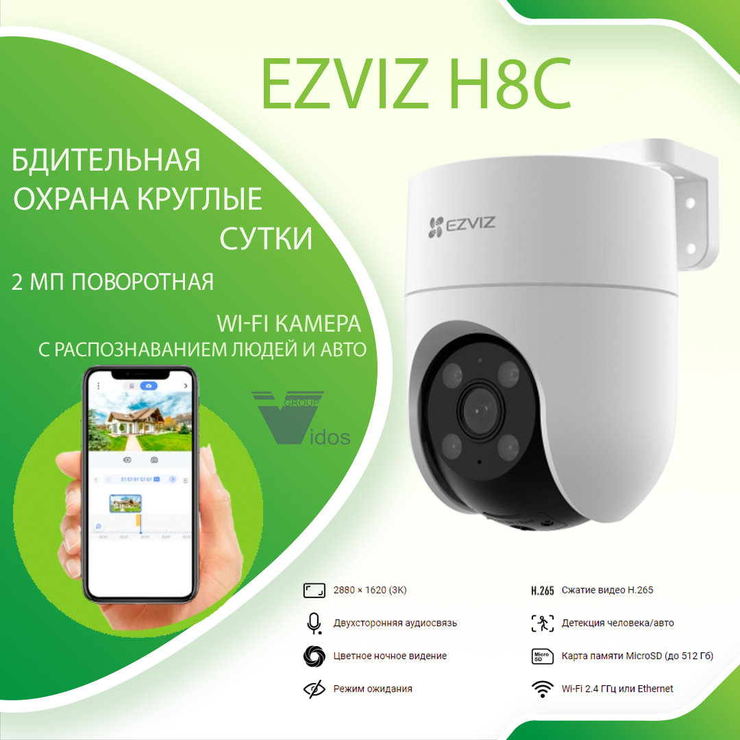 Интеллектуальная защита с охватом 360 градусов Камера наружного наблюдения H8c унаследовала ключевые технологии от серии удостоенных наград камер EZVIZ с функцией панорамирования и наклона и поддерживает множество интеллектуальных функций, что позволяет обеспечить простую интеллектуальную защиту с помощью одного компактного устройства. Эта надежная и доступная камера способна выдержать любую погоду и устойчиво работает в домашних интернет-платформах. ✔️ Разрешение 1080p