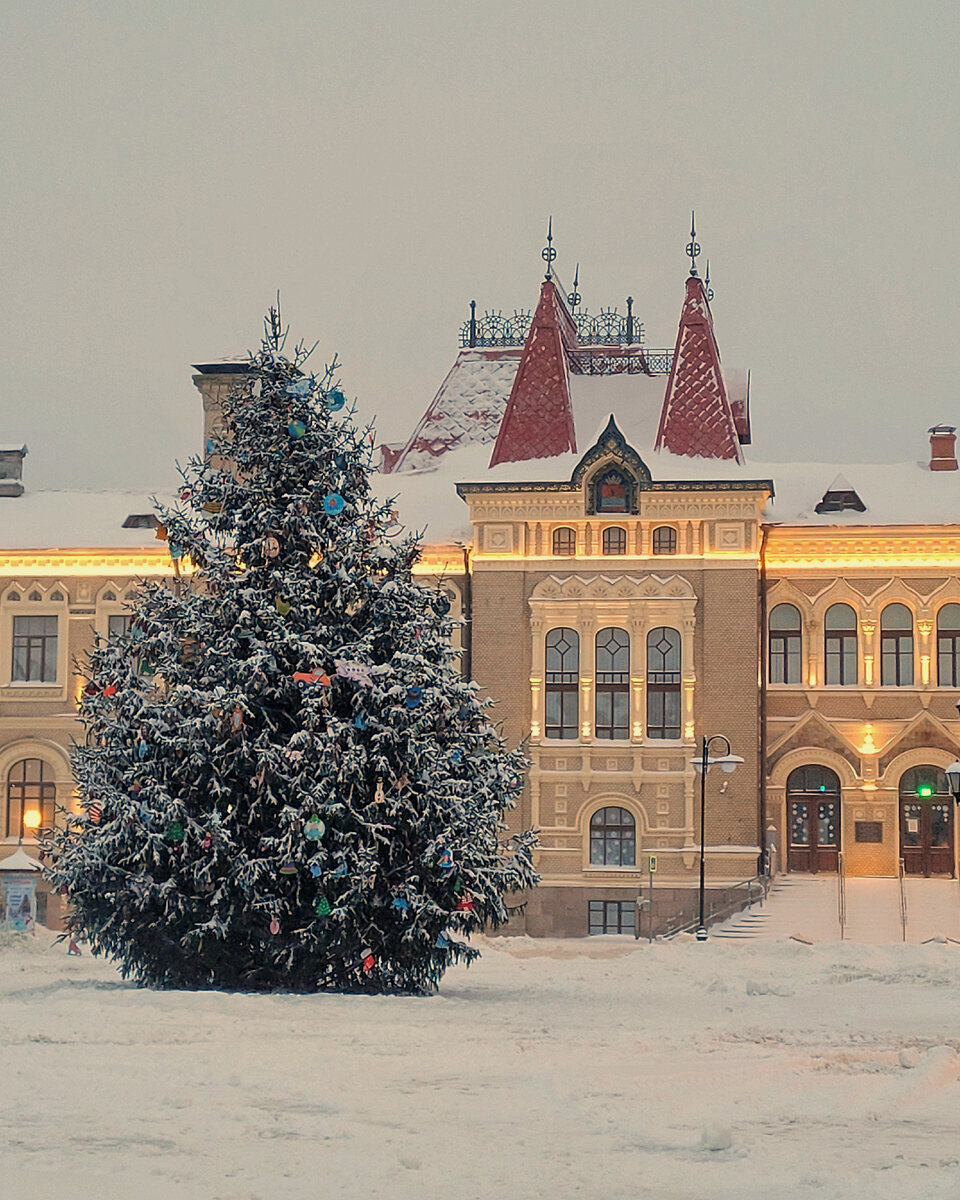 Ещё прилично показывать наряженные ёлки)))? Подумала, что дольше тянуть с рассказом о новогодней поездке в Рыбинск, не стоит. Решили туда, потому что после предыдущего путешествия было ощущение — в праздничном убранстве город должен быть очень хорош. И вот загрузили мы... ...машину до самой крыши вещами, подарками, едой — вы не поверите, каждый год тащим с собой из дома свой фирменный «Оливье» с красной рыбой горячего копчения))) А то потом бегать и искать её — тот ещё квест. Не в каждом месте и продают-то такую. Ну и поехали... ...по дороге между Переславлем и Угличем попали в аварию — закрутило на ледяной дороге и унесло на встречку. Счастье, что на ней никого не было. Так себе ощущения, честно говоря. А сын эту феерию проспал, очнулся в сугробе, и такой говорит — я не видел, давайте-ка ещё разок))) Так что по прибытии... ...в Рыбинск дружно тяпнули за то, что больше никогда подобных разков у нас не было. И упали спать. Каюсь — в тот вечер от усталости и стресса не сняла нашу квартир