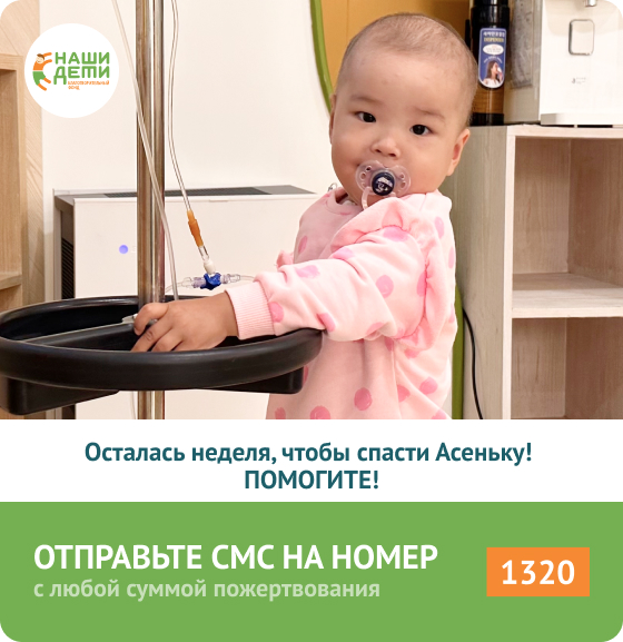 Дорогие читатели! Мы очень стараемся спасти жизнь маленькой Аси! Благодаря Вам удалось собрать значительную сумму, но сбор до сих пор не закрыт. Каждый день лечения стоит для Аси огромных денег, и клиника просит закрыть долг. Ситуация отчаянная! У нас осталась всего неделя! ПОМОГИТЕ АСЕНЬКЕ СЕЙЧАС > Здравствуйте, дорогие наши друзья и помощники! Дорогие наши читатели! Маленькая Асюша подошла к ключевому моменту своей сложнейшей борьбы с лейкозом. До конца февраля нужно провести 6-й курс химиотерапии, самый важный для крохи. А через полтора месяца провести волнительный и такой значимый анализ костного мозга на наличие онкоклеток. Но планы изменились! Нам сообщили печальную новость. Клиника поставила срок: неделю на оплату долга за лечение! Иначе такой важный для Аси этап лечения останется незавершённым! Мы так боимся не успеть, ведь РАК не ждёт ни минуты... У малышки снова выпадают волоски, она перестала есть, быстро утомляется. Показатели крови упали настолько, что ежедневно приходится