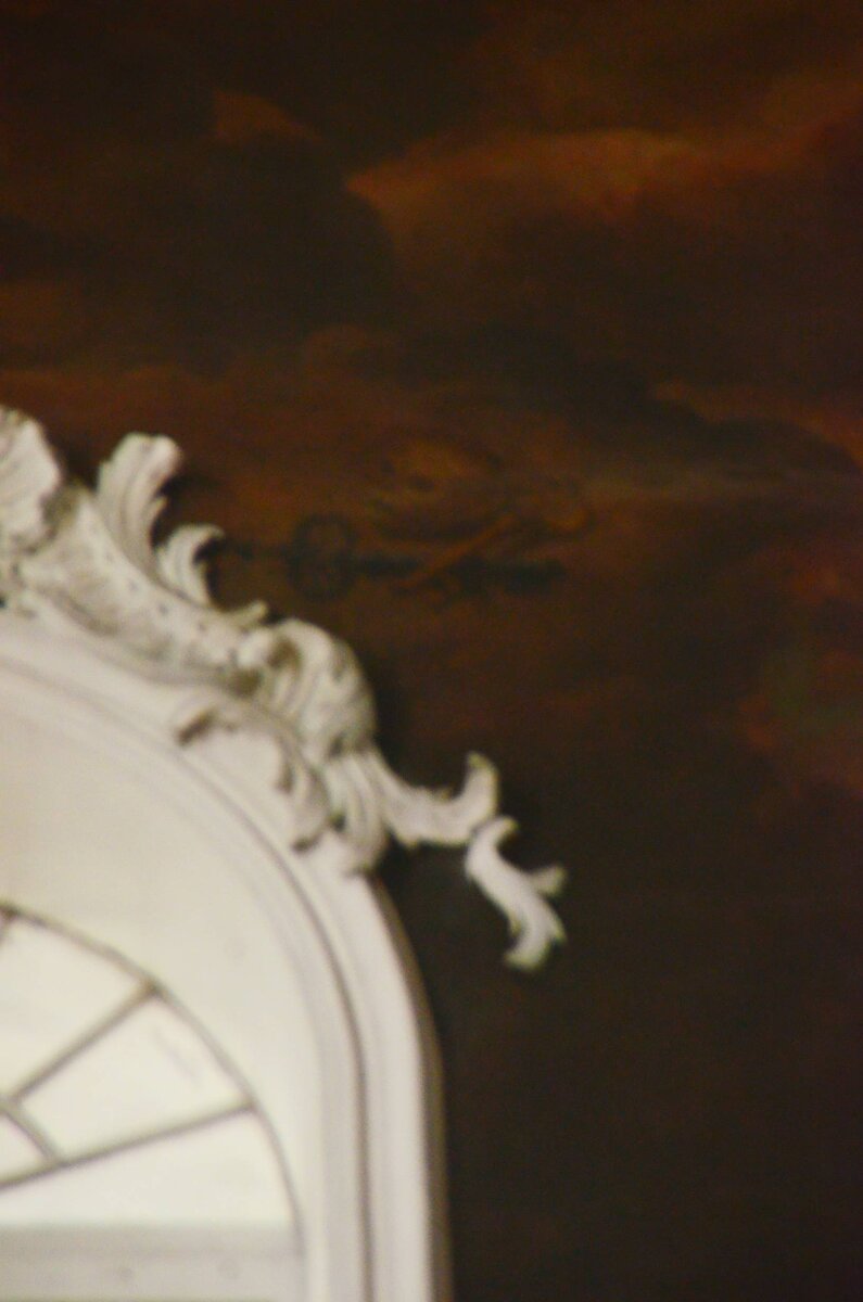 Где мы их увидим? Заходим в правый предел и нам нужна настенная фреска. Смотрим на окно, и ищем верхний правый угол! Вуаля, вот эти два ключа и череп сверху. Правда в книге Откровения череп не упоминается, тут скорее всего символ несёт смысловую нагрузку. Но ключики именно оттуда.