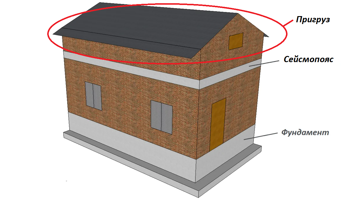 Антисейсмические пояса всегда пригружены сверху какой-либо тяжелой строительной конструкцией, чаще всего надстроенным этажом, поскольку именно пригруз заставляет работать пояс по своему прямому назначению — на растягивающее усилие.