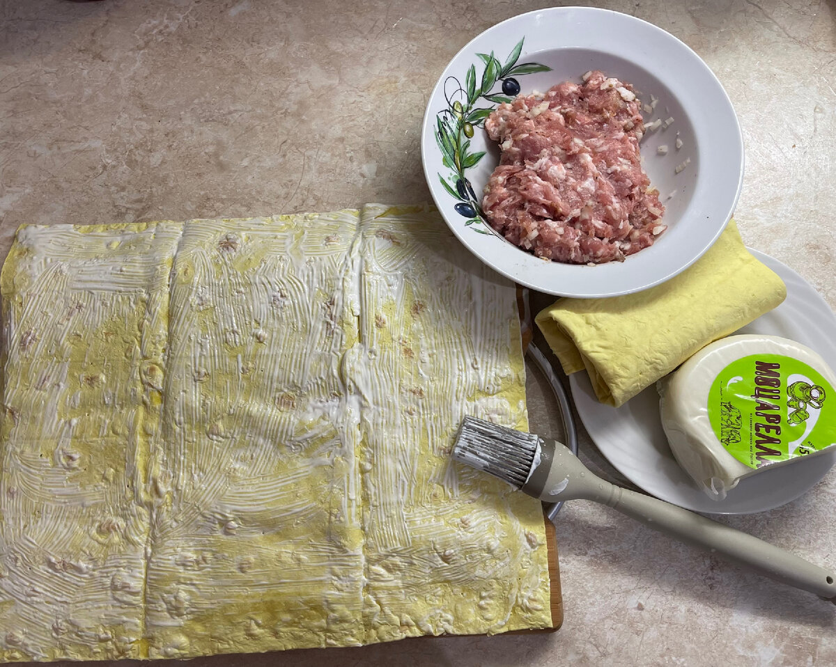 Обычно пишут в заголовке, что рецепт под пытками выведали у соседки или повар из ресторана, обязательно дорогого или турецкого, по секрету рассказал. Да и у меня обычно происходит по-другому: дочь у меня рецепты выспрашивает. В данном случае она поделилась простым рецептом приготовления вкусной закуски или сытного перекуса. Она сейчас питается на подсчете БЖУ. Рецепт опробован и продукт съеден. Все до крошки и не один раз. На приготовление этой закуски потребуется 15 мин, еще 40 мин длится процесс запекания. Ингредиенты: Лаваш - 2 листа; Сыр Фарш Специи Сметана Приготовление 1. Лист лаваша смазать сметаной; 2. Сверху посыпать натертым сыром; 3. Приготовить фарш: поперчить, посолить по вкусу; 4. Второй лист также смазать сметаной; 5. Разложить тонким слоем фарш, оставляя пару сантиметров от краев; 6. Два листа наложить один на второй и свернуть рулетом; 7. Поместить в подходящую форму, смазав сверху сметаной, можно взбитым яйцом; 8. Поставить в разогретую до 180 градусов духов