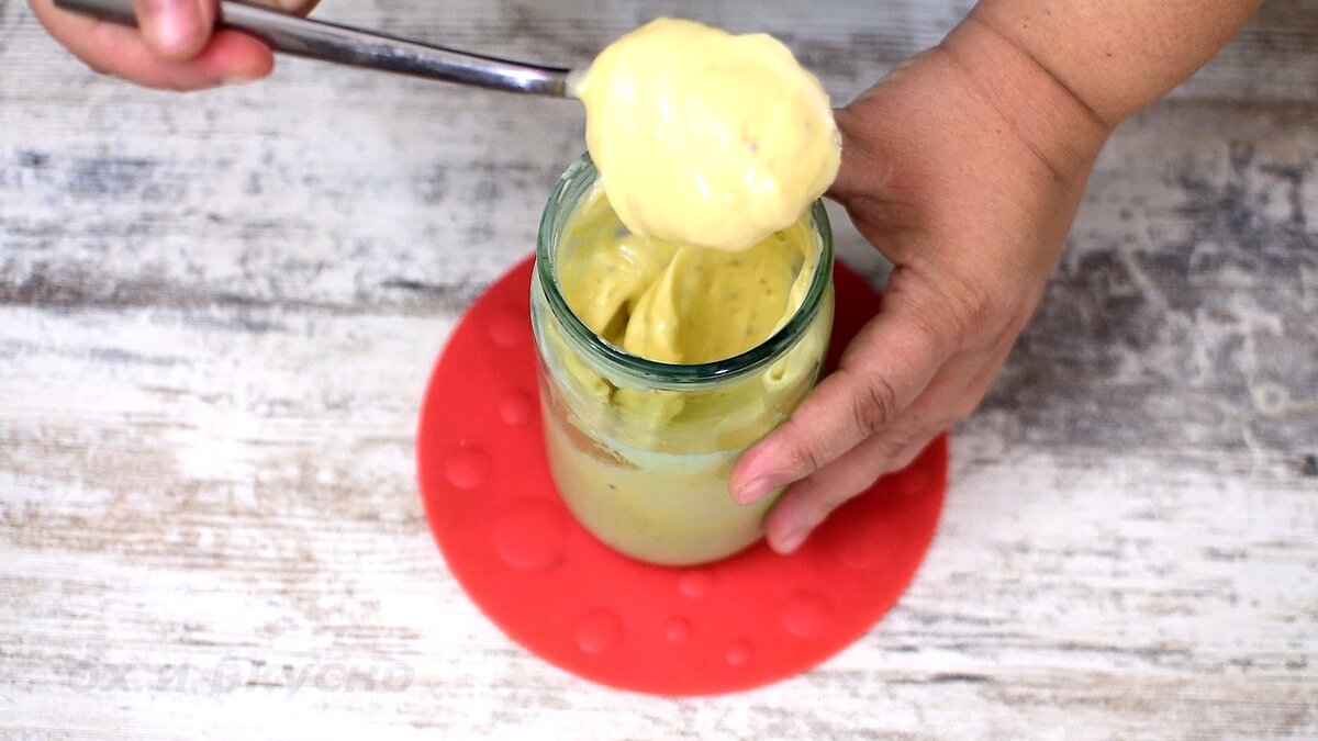 1 ст.л. любого рассола (по желанию) Для начала беру чистую и главное- сухую банку, у меня 650 мл. Вливаю в нее растительное масло, яйцо, добавляю соль , сахар, и лимонный сок. Пока все стандартно)) Далее добавляю соевый соус, горчицу (абсолютно любую, даже в зернах можно) и ст. л. огуречного рассола. Рассол добавляете по желанию. Мне с ним нравится, аромат сразу интересный. Но... Если у вас рассол соленоват, то либо уменьшаете количество соли, либо убираете совсем. Ну, а дальше все просто.. Берем погружной блендер, опускаем его до