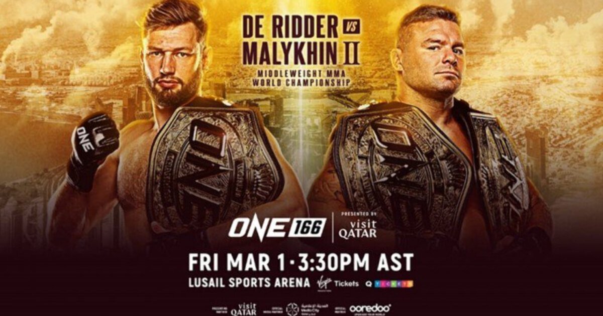 1 марта в Лусаиле (Катар) пройдет турнир ONE Championship 166. Событие возглавит бой за титул в среднем весе между Анатолием Малыхиным и Реньером Де Риддером Где и во сколько смотреть? Прямую трансляцию турнира на территории России покажут каналы «Матч! Боец» и «Матч ТВ». Начало боев предварительного карда – 15:30 по московскому времени. Основной кард. Реньер Де Риддер (16-1) – Анатолий Малыхин (13-0); Джарред Брукс (20-2) – Джошуа Пасио (20-4); Кай Танг (17-2) – Тан Ли (14-3); Стамп Файртекс (11-2) – Денис Замбоанга (10-2); Тай Руотоло (26-10) – Айзек Митчелл (18-2). «Я – легенда». Малыхин опубликовал фото с тремя чемпионскими поясами Анатолий Малыхин: «Я – лучший тяжеловес мира. Пусть Нганну огорчается, что не подрался со мной»