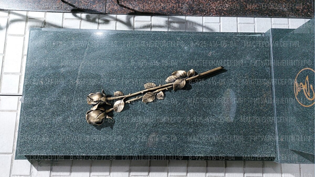 Накладные каменные розы в бронзовом цвете - красивое и прочное украшение на памятник или надгробную плиту, иногда слов не достаточно, чтобы выразить всю глубину чувств к близкому человеку, и тогда, на помощь приходят чувственные символы. Две накладные розы - символ вечной памяти, любви и уважения, данное оформление придает памятнику трогательность, добавляет исключительную изысканность и воплощает прекрасные светлые мгновения, розы на надгробии способы передать всю безграничную нежность и благодарность близкому человеку, который присутствовал в нашей жизни и подарил счастье, любовь и множество моментов, цветы на надгробии никогда не завянут и не потеряют своей красоты, благодаря накладному декору место упокоения всегда будет выглядеть утонченно и невероятно красиво. Хочется добавить, что каждая деталь вручную вырезалась нашими мастерами, тем самым делая ее по-настоящему уникальной и неповторимой в своем роде, бронзовое прочное покрытие обладает прекрасной стойкостью к погодным явлениям