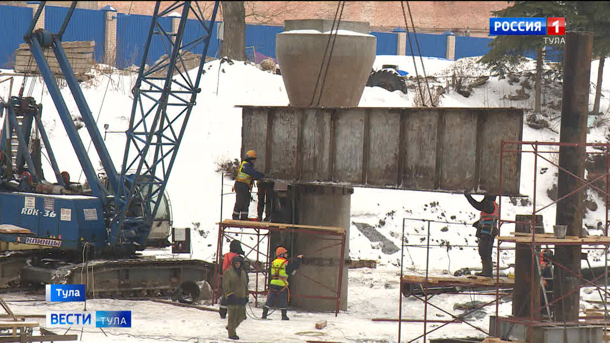 До того берега Упы почти 200 метров и полгода стройки. И все работы заключаются не только в возведении самого моста, но и строительстве эстакад и съездов. Работы выполнены чуть более, чем на 40 процентов. До паводка здесь надо успеть поставить шпунты Ларсона, которые укрепят берега и защитят от затопления рабочих зон. Сейчас устанавливают каркас будущей переправы. Константин Ильин, начальник участка подрядчика: Это ещё не сам мост, это металлическая конструкция, которую мы здесь собираем предназначена для дальнейшего бетонирования, то есть устройство опалубки и армирования самого моста. То, что вы видите, это только один пролёт. Здесь у нас получается, 14 пролётов будет на этом участке через реку Упа. Здесь используются уникальные технологии. Из-за изогнутой формы моста, его сделают монолитным. Это послужит не только для удобства в строительстве, но и гарантирует прочность и долговечность. Как уверяют строители – на века. Андрей Кудряшов, представитель ФБУ “РосСтройКонтроль”: Каналообр
