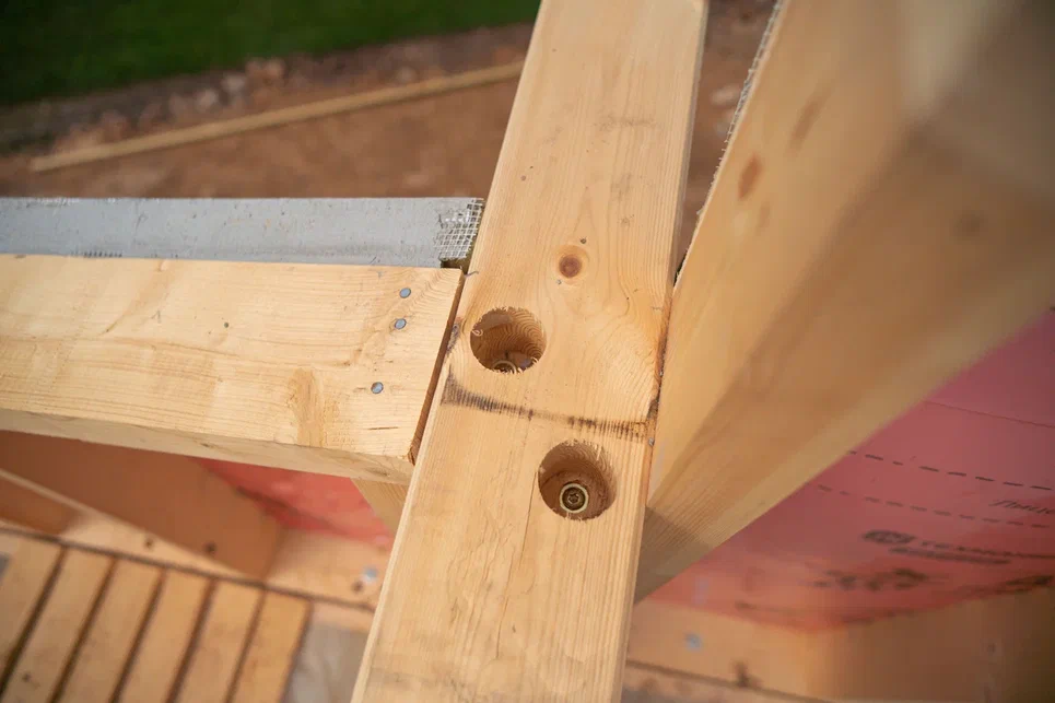 Чтобы соединять деревянные детали нужны крепежные отверстия. Таких крепежных отверстий на каждый домокомплект приходится много, и они должны находиться в строго определенных местах. Поэтому мы делаем их на станке по заданной программе. В строгом соответствии с проектом.