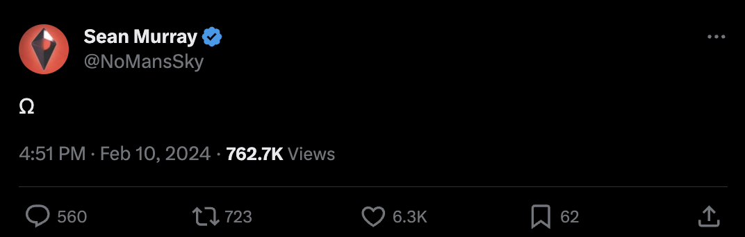 Вокруг будущего обновления No Man's Sky снова поднялся ажиотаж после твита Шона Мюррея с символом "Ω"