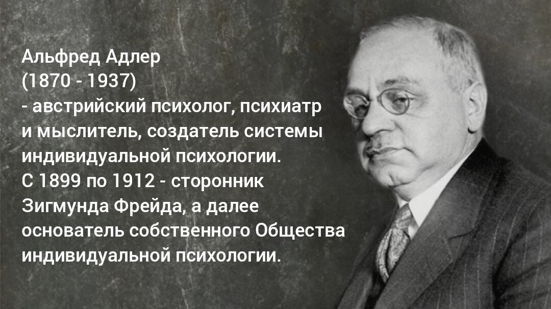 Нашу жизнь определяет то, чего нам не хватает. Именно исходя из чувства неполноценности мы ставим перед собой цели в жизни. Так считает австрийский психолог Альфред Адлер. От того, как человек воспринимает свое тело и его недостатки, зависит постановка жизненных целей. Молодая женщина тратит сотни тысяч рублей на пластические операции, потому что внешность ее не устраивает. Ребенок становится замкнутым на всю жизнь, потому что его дразнят в школе толстым (или тощим). Важно помнить также, что человек - существо социальное. Его внутренние чувства формируются под влиянием окружающего мира. Поэтому люди, как правило, стремятся к двум вещам: Неполноценность с детства Адлер верит, что психология человека формируется в детстве и остается практически неизменной до самой смерти. И зачастую она зависит от места в семье, которое мы занимаем. Младшие дети будут пытаться "обогнать всех остальных членов семьи и стать самым способным ее членом" потому, что буквально они - самые маленькие и слабые по