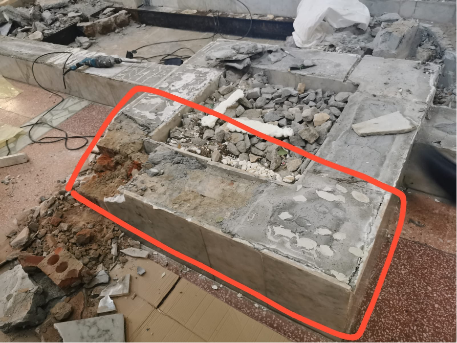 Ремонтным составом ARENA RepairMaster R500 (65 МПа) литьевой, высокой марки, цвет, колерованный с добавлением мраморного щебня.
