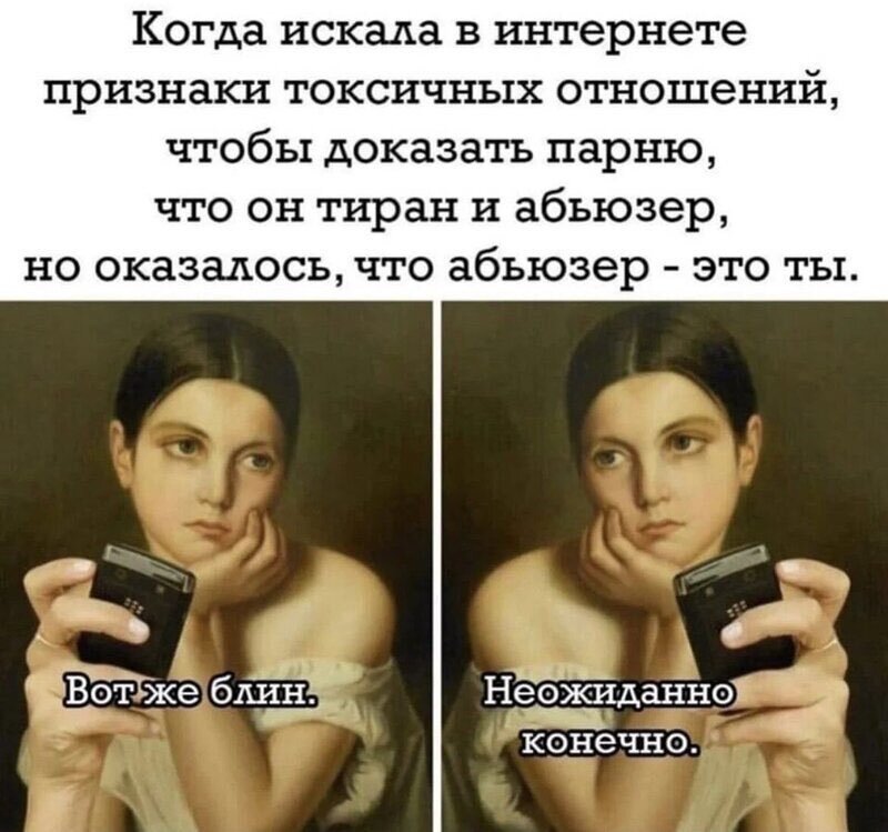 Вы вот тут опять сидите и ничего не знаете! А я вам, смотрите, вона чё в ладошках принесла: "Да глядь, забодали уже Арбузеры, арбузеры, домашнее насилие, мужики агрессивные животные, а женщины нежные феи А тыкву напрячь и немного подумать Будет ли мужчина при послушной дающей жене кулаками махать Никада не будет Тока коль баппа доведет, а они это могут, манипуляторши еще те Вот кто настоящие арбузеры и газлайтеры Мужики сдесь жертвы", – из комментария негодующего читателя. Ясненько, милые дамы? Домашние боксёры это, оказывается, всего лишь безвинные жертвы женских манипуляций и женского газлайтинга. Их нужно понять и простить!!! Ну а коварных бапп-манимуляторш (то есть нас с вами) наверное нужно посадить, чтобы терпил из мужиков не делали. "Мужчину терпилой именно эенщина делает. Процент не дам, но в ОЧЕНЬ большом числе случаев. Женщины учатся манипулировать и прогибать с ранних школьных лет, даже толком это не понимая. А мужчины остаются наивными и доверчивыми даже в 30-35 лет.