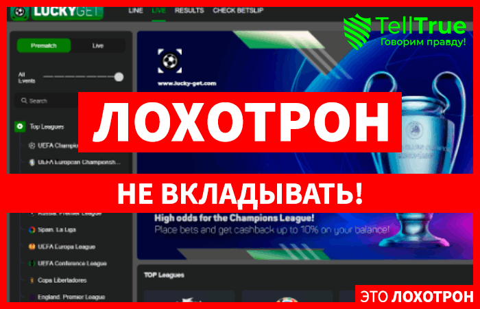 Проект Lucky-Get является фальшивой букмекерской конторой. Данную платформу уже занесли во множество черных списков по причине активного роста числа обманутых этими жуликами пользователей.