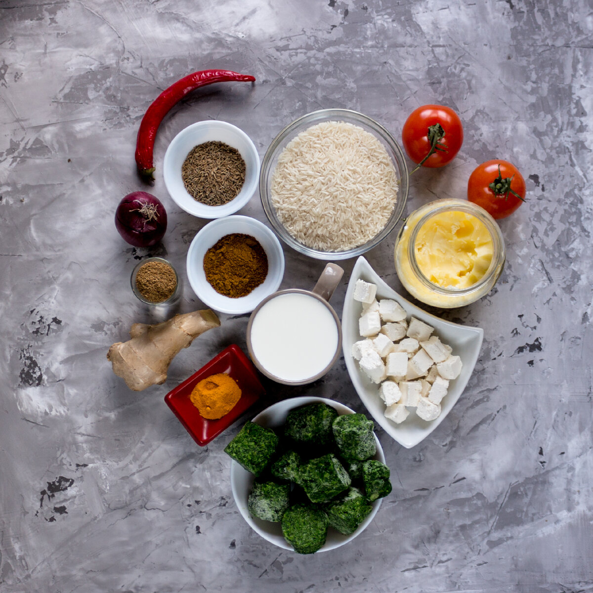 Палак Панир (Palak Paneer) — еще одно индийское карри. Делается легко, основные действия схожи с Китчен Кинг. Так что если научитесь делать одно карри, другие идут как по маслу. Питательность и полезность — как всегда на высоте. Рекомендую вегетарианцам. Ингредиенты: Специи: Панир — сыр Индийской кухни, его можно сделать самим или же заменить на адыгейский. Количество риса варьируется степенью сытости. Рецепт 1. В блендере с добавлением воды перемалываем: имбирь, лук, чили перец и чеснок. 2. Перемалываем кешью. Одновременно ставим на водяной бане шпинат. 3. На горячую сковороду в масло высыпаем специи (половину зиры оставляем на рис, а половину масалы на дальнейшие действия) и кешью. Немного поджариваем. 4. Добавляем нашу смесь-пюре из перца, имбиря, лука и чеснока и в сковороду. Накрываем крышкой, чтобы протомилась. 5. Достаем шпинат, воду от него оставляем, чтобы удобнее было пюрировать блендером до состояния крема. 6. Если используем свежие помидоры — обдаем кипятком, снимаем кожур