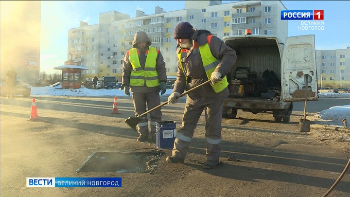 В Великом Новгороде даже в мороз не прекращаются работы по восстановлению дорог