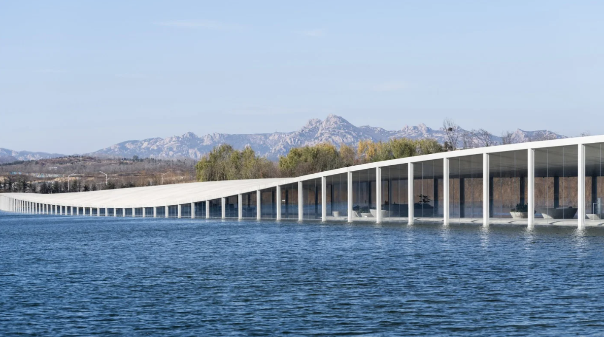 Недавно в китайской провинции Шаньдун появился новый музей Zaishui, созданный совершенно по-новому. Если вы думаете, что вам придется бродить по залам с экспонатами, то вы ошибаетесь. Заishui - это проект, который не только будет предлагать яркую и интересную выставку, но и позволит посетителям насладиться уединением с природой. Это место, где искусство и природа соединились в совершенной гармонии. Культурное здание впечатляет своими размерами - его длина превышает 1 километр, и оно гордо возвышается над красивейшим озером. Архитектурное бюро Junya.ishigami+, являющееся автором и исполнителем этого уникального проекта, стремилось создать музейное здание, который будто бы сольется вместе с озером. Их задачей было сделать так, чтобы музей и природа слились в одном прекрасном ансамбле. Само здание выглядит как изогнутая лента и выполнено из комбинации бетона, стекла и стали. Благодаря большому количеству панорамных окон, музей купается в свете и открывает невероятные виды на окружающую пр