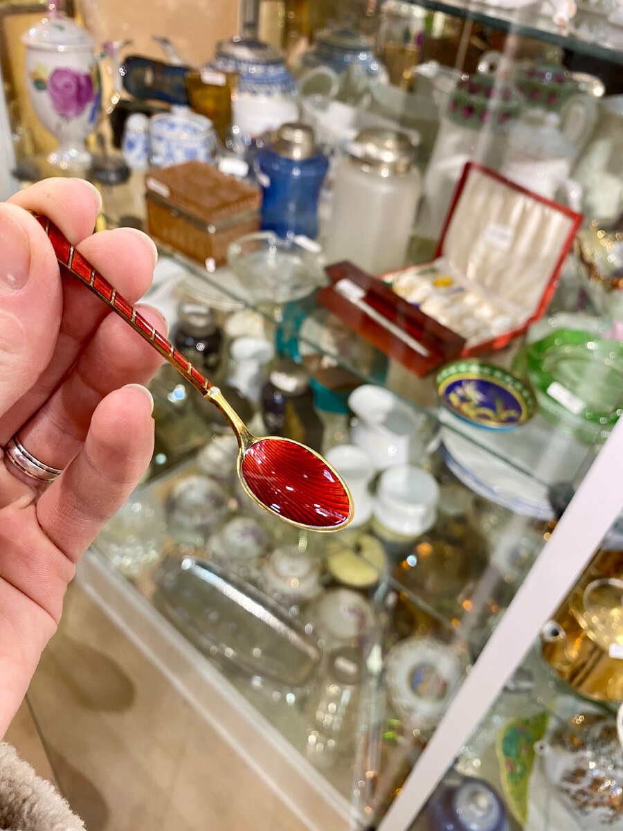 Во время своих путешествий я всегда стараюсь посетить местные магазинчики старинных вещей. Коломна не стала исключением😊 Это увлекает, ведь в каждом городе свои акценты - где-то много советского фарфора, у других - много металла, третьи хрусталями торгуют… А еще и польза есть - прокачивается насмотренность, встречаются новые идеи, мониторинг цен, опять же😁 Идем смотреть, есть ли, чему подивиться в коломенской антикварной лавке) И сразу в яблочко! Удивительной красоты ложки! Маленькие, но совершенно прекрасные! 40 тысяч за набор Европейские. Это серебро и гильошированная эмаль (вариант техники эмали по гравировке) И еще набор чайных ложек Я красивше не видал! Серебро с фарфоровыми вставками. По 3000₽ за штуку. Когда держишь в руках такой красоты вещи, кровь сама по себе начинает окрашиваться в голубой цвет:-) Фарфоровые пары Villeroy&Boсh с птицами по 4000₽ Знаете, эту лавку с полной уверенностью назову антикварной. Буквально каждая вещь приковывает к себе внимание! Все как на подбор