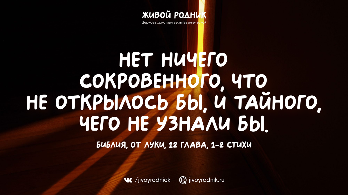 Нет ничего сокровенного, что не открылось бы, и тайного, чего не узнали бы. Библия, от Луки, 12 глава, 1-2 стихи