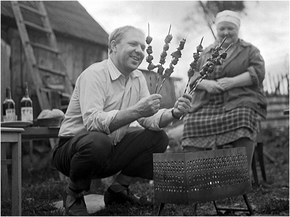 На фотографии перед вами знаменитый клоун Олег Попов, только здесь он не «на работе» а отдыхает на даче у родителей. Снимок был сделан Вячеславом Ундасиным в 1968 году.
