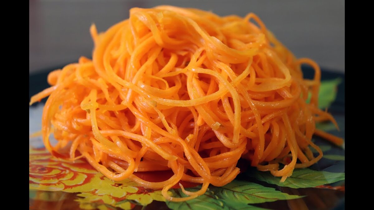 Морковь по корейски.Профессиональный рецепт, от которого не советую отступать даже на миллиграмм. ----------------------------------------------------------------------------------------------------------------- Морковь(обязательно должна быть сочной) - 1 кг (нарезанной) Соль - 15 гр. Сахар - 20 гр. Уксус 9% - 25 мл. Кориандр - 2 гр.(обязательно в зернах) Сухая аджика - 2 гр.(сушеный,дробленый перец чили) Чеснок свежий - 8 гр. Растительное масло - 90 мл. Лук - 35 гр. ------------------------------------------------------------------------------------------------------------------ Морковь почистить и нарезать на специальной терке.Добавить соль и уксус.Спокойно перемешать.Кориандр растолочь в ступке.Добавить к моркови вместе с сахаром,сухой аджикой и чесноком.Лук пассеровать в растительном масле на умеренном огне до едва легкой золотистости.Нагретое масло (без лука) вылить на специи. Тщательно перемешать.Утрамбовать морковь и мариновать в собственном соку в холодильнике 12 ч