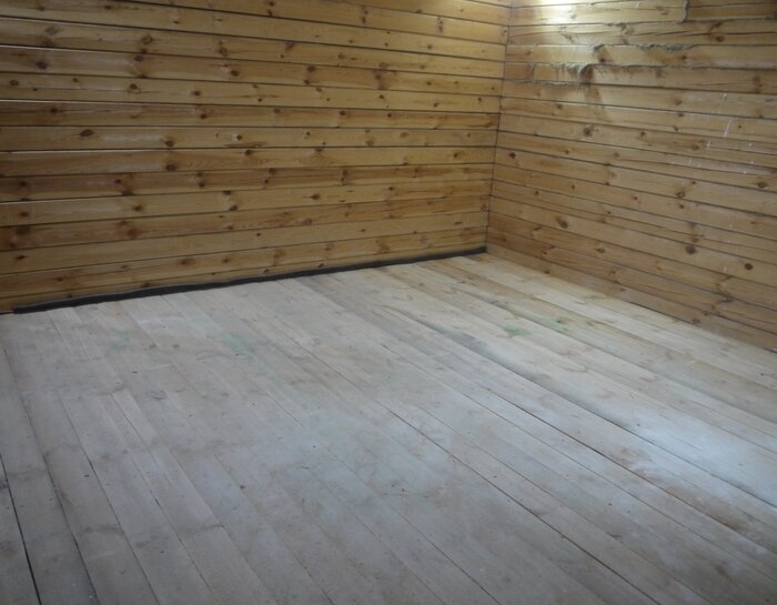 Фанера – один из самых популярных материалов для строительства. Сделать опалубку – подходит, выстроить перегородку – пожалуйста, выровнять пол – милости просим. Из явных недостатков выделяются два – материал не любит влагу и его высокая стоимость. Простота укладки фанеры на пол своими руками позволяет выполнить строительные операции одному человеку, без привлечения бригады строителей, поэтому эти плиты так востребованы в частном строительстве. В нашем строящемся доме мы фанерой будем выравнивать деревянные полы, чтобы затем уложить на неё ламинат. Толщину листа фанеры подбирают по качеству чернового пола, чем он ровнее, тем лист тоньше, а, соответственно, дешевле. Самая распространённая толщина для пола – 10 мм, именно такую фанеру мы и приобрели. Размер стандартный 1525 на 1525 мм. Количество листов рассчитывается по площади пола, плюс один лист. В нашем доме черновые полы сделаны из обрезной сосновой доски толщиной 40 мм. Закинуть автору на чай можно здесь. Перед укладкой фанеры всю
