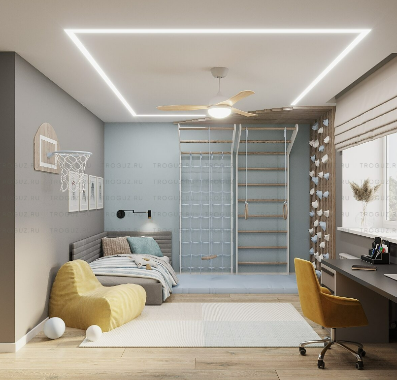 Что важно учесть в разные возрастные периоды при проектировании детской комнаты? В возрасте 3-5 лет Это игровой интерьер, красочный. В этот момент начинает ярко проявляться индивидуальность малыша и родителям важно учесть его предпочтения, несмотря на юный возраст. Мальчики в этот период становятся самостоятельными, важную роль играют любимые персонажи и предметы. Это стоит учесть в декоре. А для отделки помещения выбрать практичные материалы. Возраст 6-10 лет Функциональный, минималистичный интерьер, в котором мальчик будет чувствовать себя комфортно и куда приятно будет пригласить друзей. Спокойная атмосфера, лаконичные формы мебели, уклон на интересы и хобби ребенка, удобно организованное рабочее место и зона хранения для вещей. Подростковый возраст Можно рассмотреть стиль лофт, минимализм, либо любу