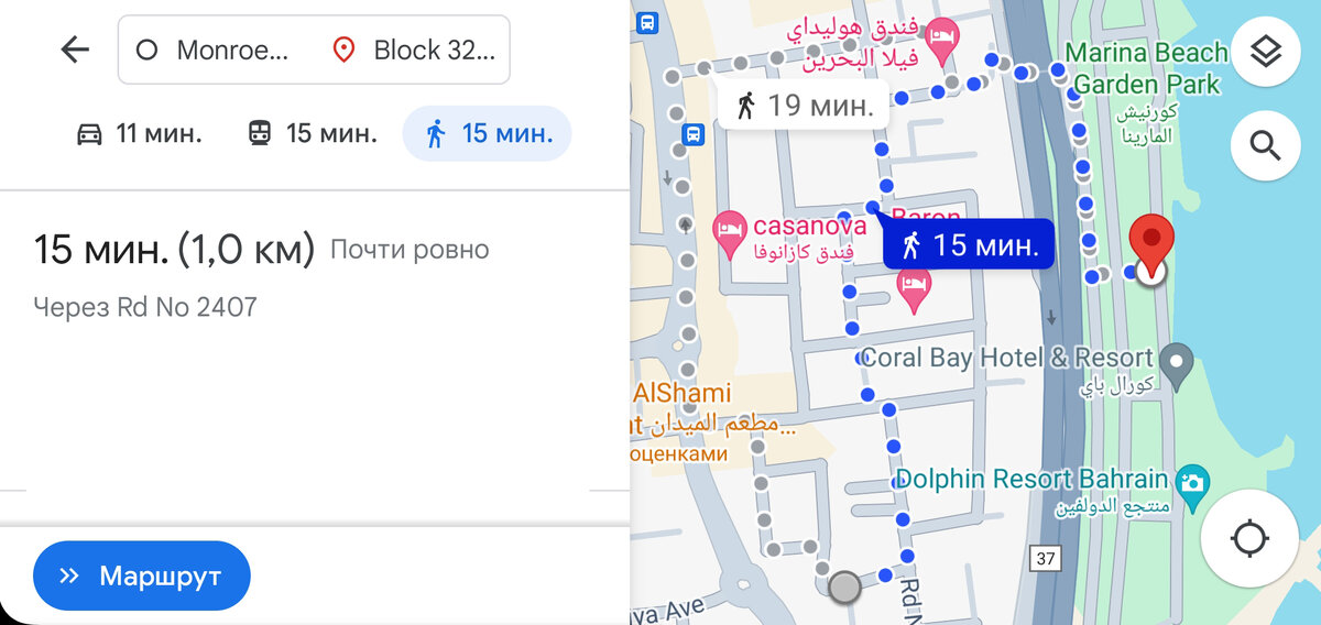 Для того,чтобы сделать фотографию, чтобы башни полностью попали в кадр, необходимо перейти через ту самую скоростную дорогу. Точнее перебежать через нее с полным отсутвием пешеходных переходов вокруг. Реально, в Бахрейне их очень мало, а если и есть, то через них никто не пропускает. И этот переход в неположенном месте придумали не мы ради фотографии, а Гугл карта вела нас туда таким маршрутом.