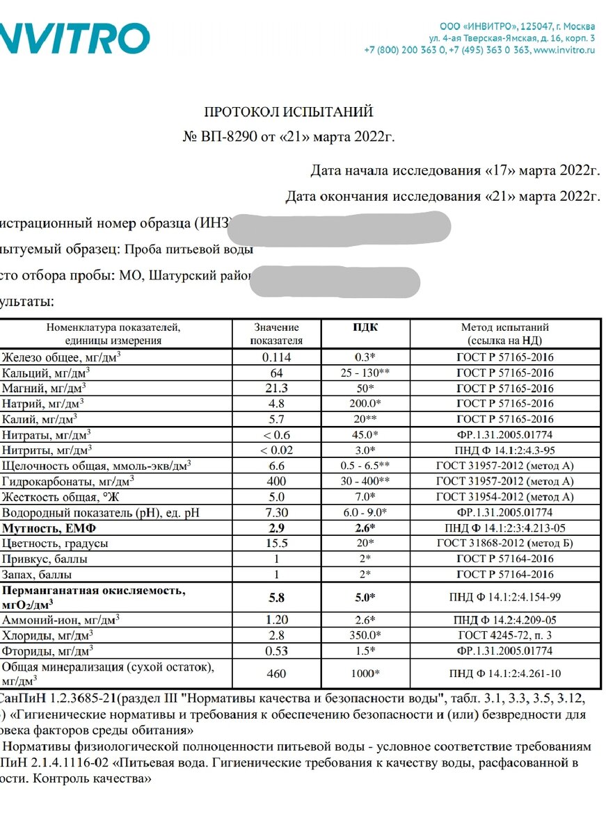 После монтажа скважины (смотри предыдущие посты) мы месяц проливали воду в соседнюю канаву, чтобы сдать ее на анализ. Обошелся он в Инвитро в 3800. Сдавать нужно максимально свежую (!) воду без доступа кислорода: бутылку наливать с верхом и сразу же закрывать. Иначе окислится железо и показатели будут недостоверными. Бутылка объемом от 1.5 л. В лаборатории просите анализ на воду из скважины на 20 показателей. Делают 4 рабочих дня. Вода у нас оказалась на удивление хорошей: даже без железа, что в Шатурском районе - нонсенс. Никто не верил, но неделю стоящая в ведре вода действительно не окислялась. Была небольшая мутность и запах водопровода. По фильтрам я хотел задействовать своего приятеля (он спец с 10 летним стажем в промышленной водоочистке) но к сожалению раньше конца апреля он помочь нам не смог бы. Поэтому просто наткнулся на рекламу в Инстаграме, почитал отзывы, глянул их Ютьюб и написал. Через пару дней нам уже ставили фильтры. По деньгам уложились в 70К с доставкой в наш