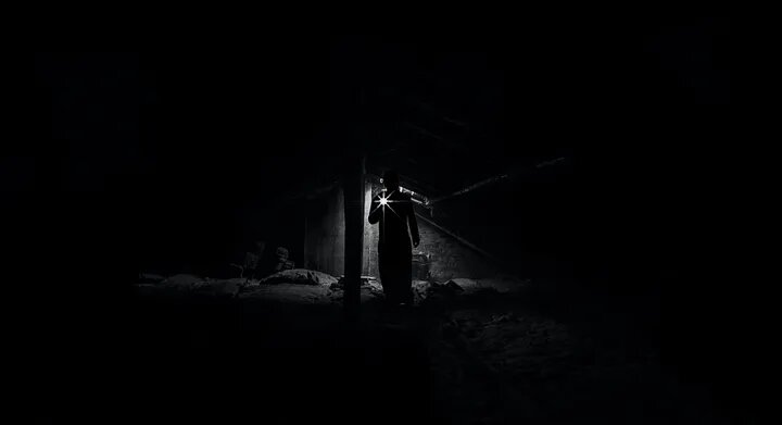 Он продолжает двигаться вперед, его шаги звучат приглушенно в этой тишине. Внезапно, что-то кажется двигаться в темноте, и главный герой замирает, его смелость начинает уступать место страху.