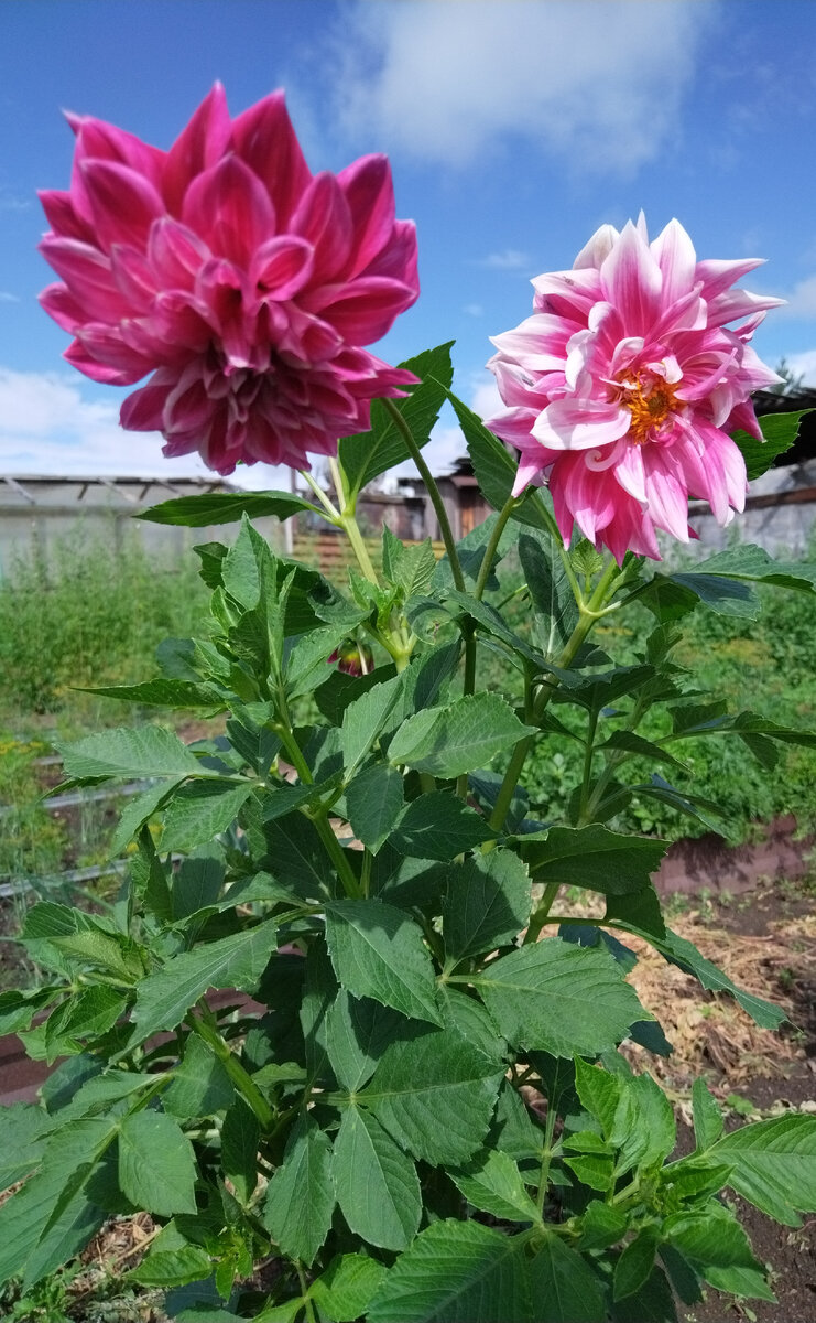 Одними из первых цветов, которые появились на моем участке 30 лет назад, были георгины. Не те однолетние, которые тоже по своему красивы и радуют глаз, а высокие, многолетники. Они вырастают большим пышным кустом, выкидывают цветоносы и радуют своим великолепием с конца июля до самых заморозков. Правда в нашем климате они не зимуют и их осенью приходится выкапывать, умудриться сохранить, и тогда весной они оживают и выпускают росточки.