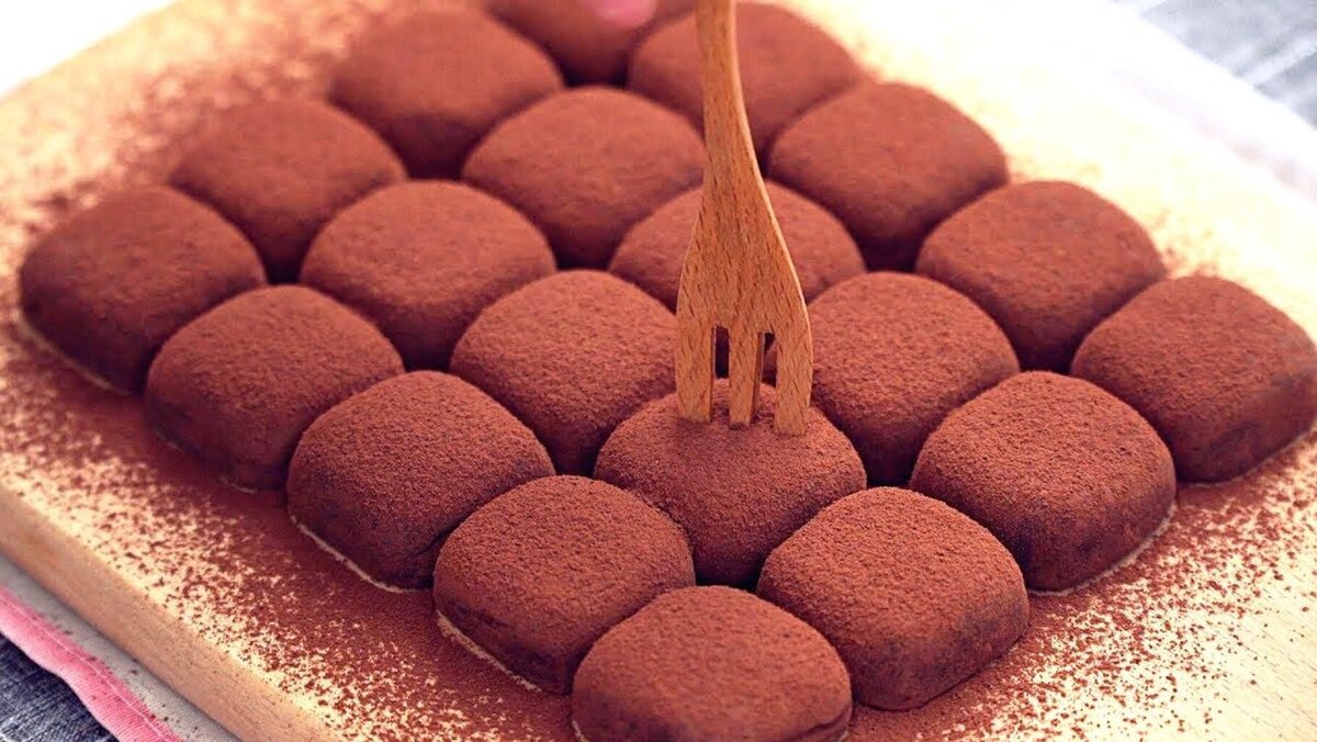 Хотите порадовать любимого сладким десертом, но никак не можете придумать, что приготовить? Тогда отлично подойдут шоколадные трюфели. Понадобится всего два ингредиента, 15 минут и холодильник. Ингредиенты: Сгущенное молоко — 240 грамм Какао горькое — 100 грамм Процесс приготовления: Выливаем сгущенное молоко в кастрюлю и ставим на медленный огонь. Доводим до состояния «почти кипения», постоянно помешивая. Переливаем сгущенку в миску и постепенно просеиваем туда какао. Полученную смесь выкладываем в прямоугольную форму и убираем в холодильник на 2–3 часа. Нарезаем получившийся трюфель на квадратики и хорошо обваливаем каждый кусочек в какао. Рецепт и фото: свободные интернет-источники