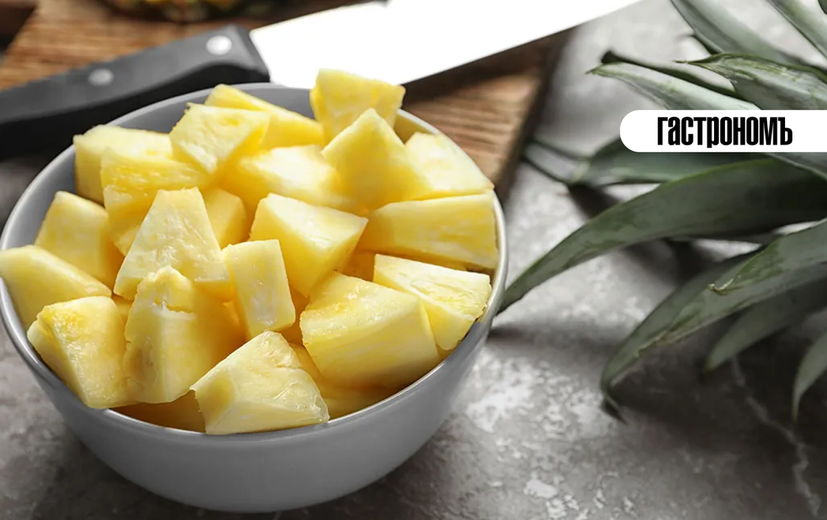 Мы за то, чтобы есть спелые ананасы сразу. Но в жизни бывают разные «не трогай, это на Новый год». Поэтому вот вам полная инструкция, как сохранить ананас в холодильнике или без него, чтобы не чувствовать укор со стороны тропиков. И всегда иметь под рукой ароматный ананас для коктейлей, закусок, салатов и десертов. Как хранить ананасы в холодильнике Если спелый ананас нельзя съесть целиком сразу, лучше всего убрать его в холодильник. Чтобы ананас оставался свежим и вкусным, соблюдайте несколько важных правил. Оптимальная температура для хранения ананаса в холодильнике — 7–8 °С. При более низкой температуре плод станет невкусным, а при высокой начнет гнить. Влажность должна быть около 90%. Если этот показатель ниже, ананас может начать увядать, а при более высоком значении покроется плесенью. При правильных условиях ананас может пролежать во фруктовом отделе холодильника около 2 недель. А недоспелый и того дольше — около 3. Если вы принесли ананас из магазина в полиэтиленовом пакете, об