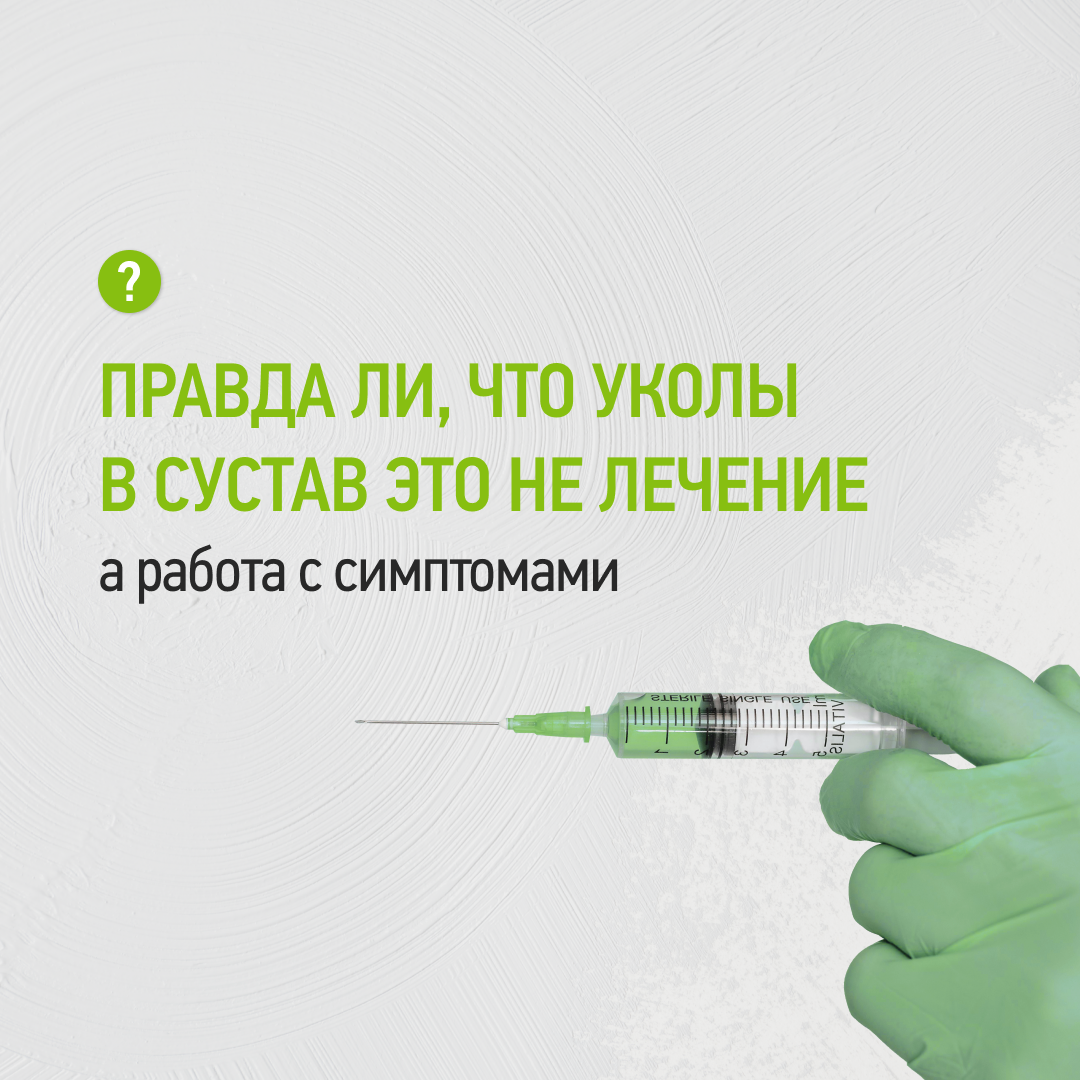 Есть известный миф о суставных инъекциях: их действие ограничено лишь устранением боли и никак не влияет на процесс лечения. Своеобразное внутрисуставное обезболивающее вместо таблеток. Неужели и правда они никак не влияют на процесс лечения, а то и вообще могут вызвать зависимость? Сегодня разберемся в понятии «лечение суставов» и поможем понять, где в этой системе находятся уколы гиалуроновой кислоты. Спасибо, что продолжаете читать наш блог! В двух словах, то, что называется лечением остеоартроза заключается в трех шагах: Шаг 1: УСТРАНИТЬ боль и воспаление. На этом шаге применяются НПВС, физиотерапия и другие методы, предписанные врачом. Шаг 2: ОСТАНОВИТЬ цикл повреждения-воспаления хряща. Вот здесь и начинается использование синтетической гиалуроновой кислоты из инъекций.