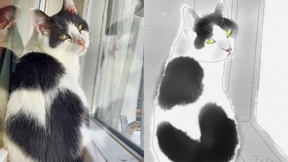 Котик, названный Женихом за любвеобильный нрав и «валентинку» на спинке, живет в в котокафе «Котики и люди» на улице Гиляровского. Женечка — подопечный сообщества Котики Сада имени Баумана, о котором мы недавно рассказывали. Но об одном умолчали: выразительного котика с сердечком на спинке очень любят рисовать посетители кафе, а однажды его портрет нарисовал японский художник Shozo Ozaki — иллюстратор, автор портретов «философских котов». Мастер увидел фото Жениха в соцсети и не смог пройти мимо! История Женечки до встречи с неравнодушными людьми похожа на сотни других: жил на улице, травмировал лапу и не мог больше защищаться от опасностей улицы, людям не доверял даже когда забрали в тепло и отвезли к доктору. Но в какой-то момент понял: от человека можно увидеть и добро. Лапу ему вылечили, кормят, заботятся — можно и попозировать. «Это кот-компаньон, любитель полежать, подумать, — рассказывает о нем его куратор Наталия. — Любит компанию котиков, особенно кошечек — настоящий дамский у