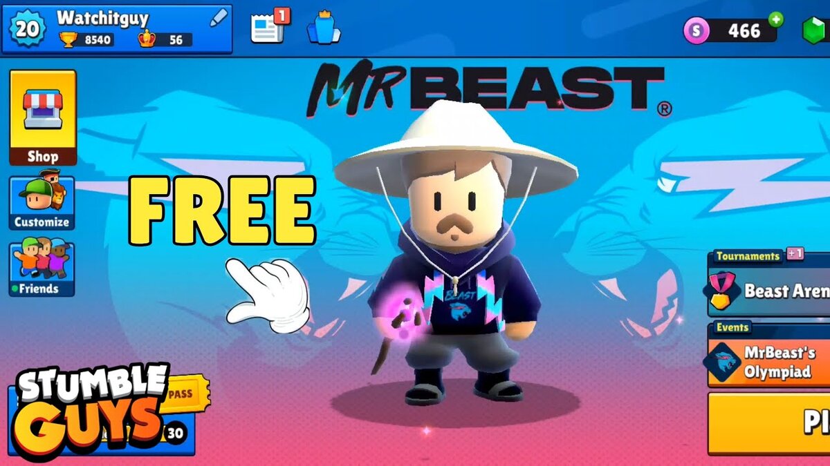 Stumble Guys — это игра, которую нельзя пропустить, теперь с новым персонажем от знаменитого MrBeast, известного YouTube блогера!