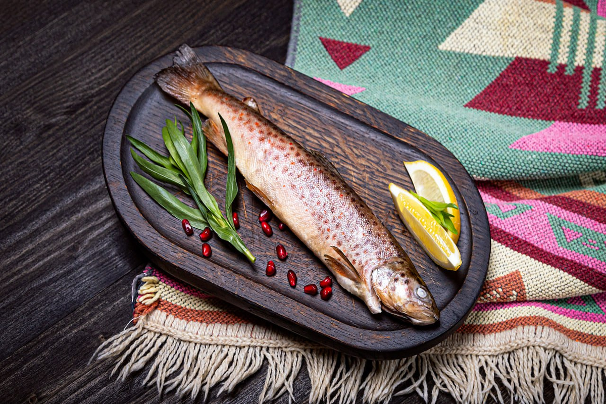 Когда речь заходит о форели, то на ум в первую очередь приходит крупная морская рыбина из семейства лососевых, которая чаще других появляется на наших столах в слабосоленом виде. Но мы сегодня решили вспомнить про ее пресноводного родственника, обитающего только в небольших водоемах с чистой проточной водой. У речной форели нежное и вкусное мясо бледно-розового оттенка, иногда даже совсем белого. Кожа у хищной рыбки довольно плотная, а внутри нет межмышечных костей, поэтому ее удобно готовить на гриле, а также запекать и жарить, как целиком, так и кусочками. Сегодня часто можно услышать восторженные отзывы по поводу форели, которая водится в горных ручьях Армении и называется кармрахайт. В Москве эту рыбу можно попробовать в ресторане армянской кухни Gayane’s, где ее готовят по рецептам бренд-шефа Гаяне Бреиовы. По нашей просьбе она поделилась секретом одного из своих блюд, в котором жареную речную форель подают с булгуром и свежим салатом из помидоров, стручкового зеленого горошка и к