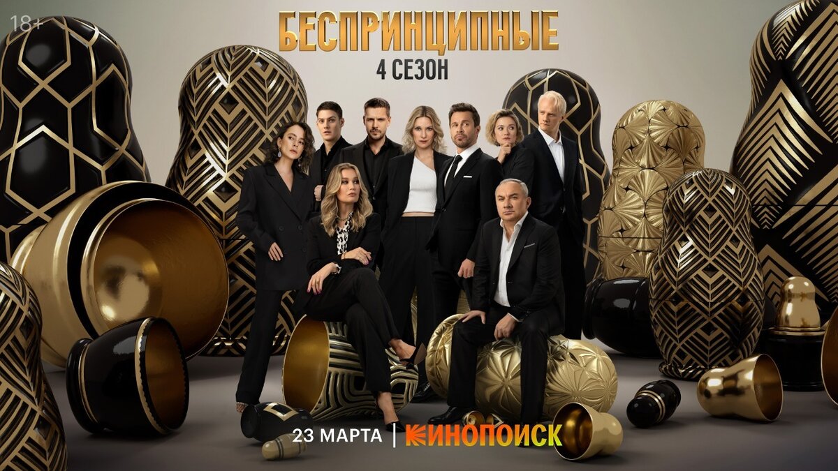 Четвертый сезон «Беспринципных», состоящий из восьми эпизодов, выйдет на Кинопоиске 23 марта, сообщает пресс-служба онлайн-кинотеатра. Главный хранитель светских секретов Славик в исполнении Павла Деревянко продолжает коллекционировать смешные и неприличные истории о своих уже давних знакомых по Патрикам и тех, кто сюда только переехал. В продолжении комедийного сериала по мотивам рассказов Александра Цыпкина появятся новые персонажи в исполнении Милоша Биковича, Матвея Лыкова, Анны Слю и Максима Лагашкина. Режиссером всех сезонов выступил Роман Прыгунов. Над сценарием сериала вместе с Цыпкиным работали Владимир Васильев и Илья Мотовилов. Четвертый сезон продолжит сюжет фильма «Беспринципные в деревне» и расширит вселенную новыми сюжетными линиями. У Славика (Деревянко) в жизни сплошная турбулентность: развод с Людой, новая любовь (Слю), но старые слабости. Генерал Хадяков (Николай Фоменко) переживает вторую молодость, пока Валя (Кристина Бабушкина) строит карьеру певицы вместе с хитры