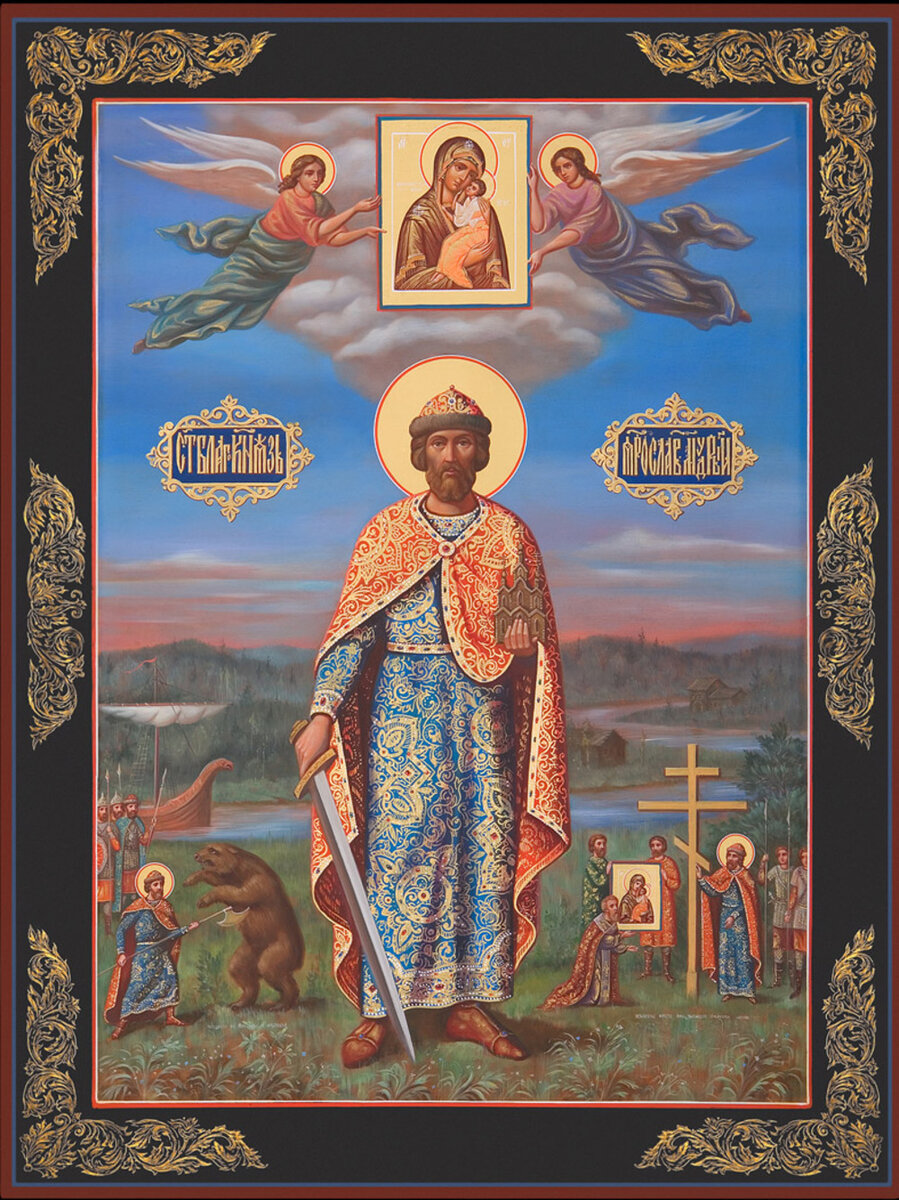 Князь Ярослав был сыном великого князя Владимира и полоцкой княжны Рогнеды. Он родился в 978 году. При разделе между сыновьями князя Владимира он получил во владения Ростов. Во время княжения в Ростове им был основан город Ярославль. Когда умер старший брат Ярослава - Вышеслав - отец перевел его в Новгород. Там Ярослав застал смерть князя Владимира и борьбу его сыновей за Киевский престол. Святополк убил своих братьев Бориса и Глеба, хотел он устранить и Ярослава, но того предупредила его родная сестра Предслава. Он выступил с новгородцами к Киеву и после трех месяцев противостояния победил Святополка. Тот укрылся у своего тестя - польского короля Болеслава. В 1018 году Святополк с Болеславом собрали войско и пошли на Киев. На этот раз им удалось победить. Ярослав снова собрал новгородцев и одержал победу, вернул себе Киевский престол. После смерти брата Мстислава Ярослав стал единодержавным князем Киевской Руси. Ярослав Мудрый был очень хорошим правителем - ему удалось обезопасить Рус