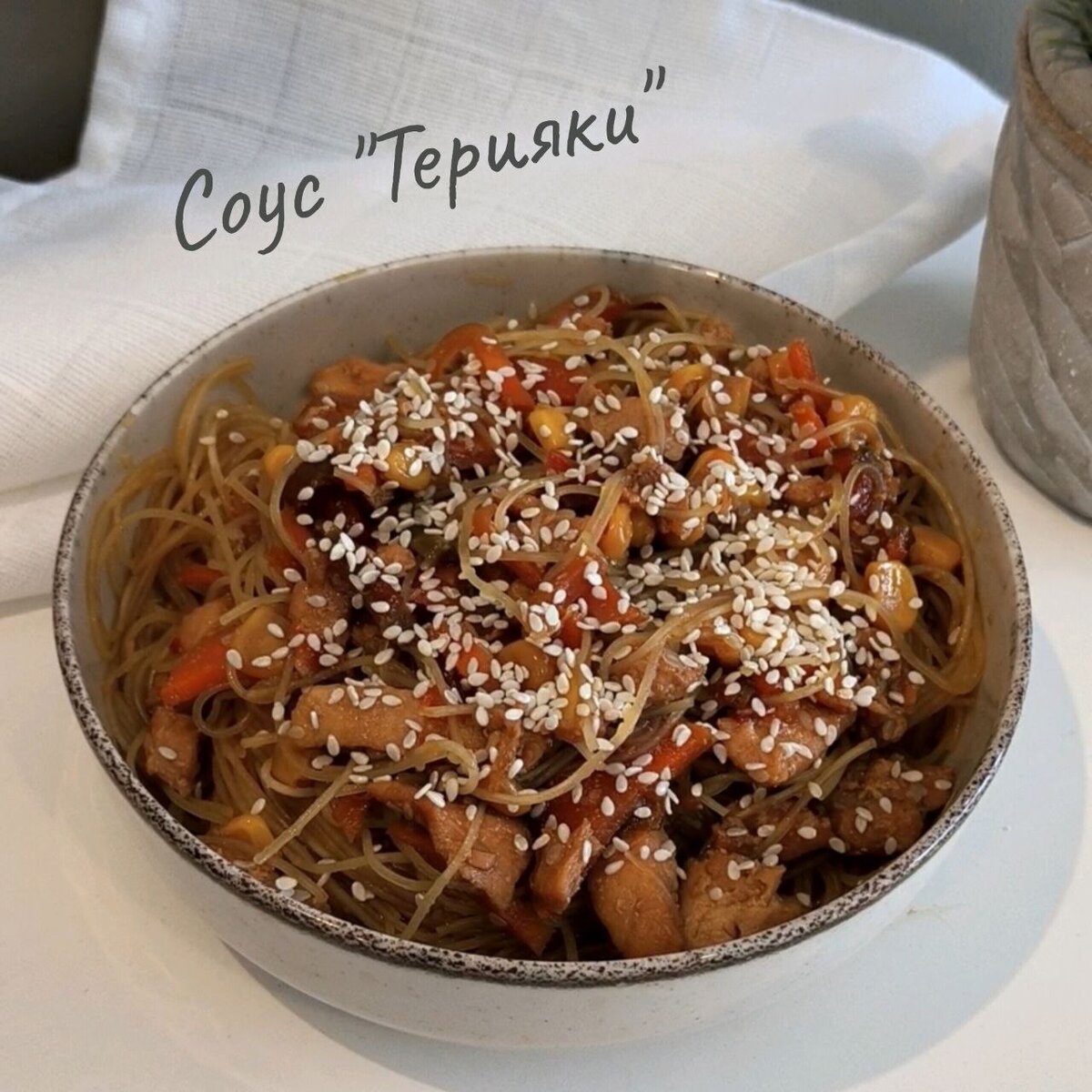 Очень простой рецепт из доступных ингредиентов. Ингредиенты: ◽ Томатная паста — 2 ст. л.; ◽ Мед — 4 ст. л.; ◽ Соевый соус — 2 ст. л.; ◽ Кунжут — 4 ч. л. На фото фунчеза в соусе терияки с овощами и куриным филе. Очень вкусно приготовить курочку в данном соусе. Рецепт «Курица в соусе терияки»: Выложить в соевый соус мед и томатную пасту. Перемешать, прокипятить. Обмакнуть курицу со всех сторон. Отправить мясо на разогретый гриль или противень. Обжарить до румяной корочки. Вынуть мясо и посыпать его кунжутными семечками. Подавать можно с рисом и овощами. Приятного аппетита! 🤍