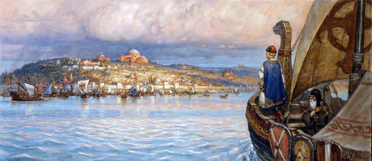 Взаимоотношение Руси с Византийской империей представляет собой исторически важный и сложный период в развитии обоих государств. Связи между этими двумя древними государствами имеют давние корни и простираются на протяжении многих столетий. С начала своего возникновения Русь тесно взаимодействовала с Византией как политически, так и культурно. Византийская империя считалась благодаря своей мощи и культурному влиянию одной из величайших держав своего времени. Русь же, стремясь к развитию и укреплению своей политической и культурной идентичности, нередко устремляла свой взор на Византию. Русские в Константинополе впервые появились в 838 г, в это время к василевсу Феофилу прибыла делегация от народа росс, а затем она в составе Византийской делегации оказалась в Западной Европе при дворе короля Франции Людовика I Благочестивого. Сведения об этом содержатся в Бертинских анналах, принадлежащих перу епископа Пруденция. Согласно хронике Нестора, первый договор между двумя государствами датируе