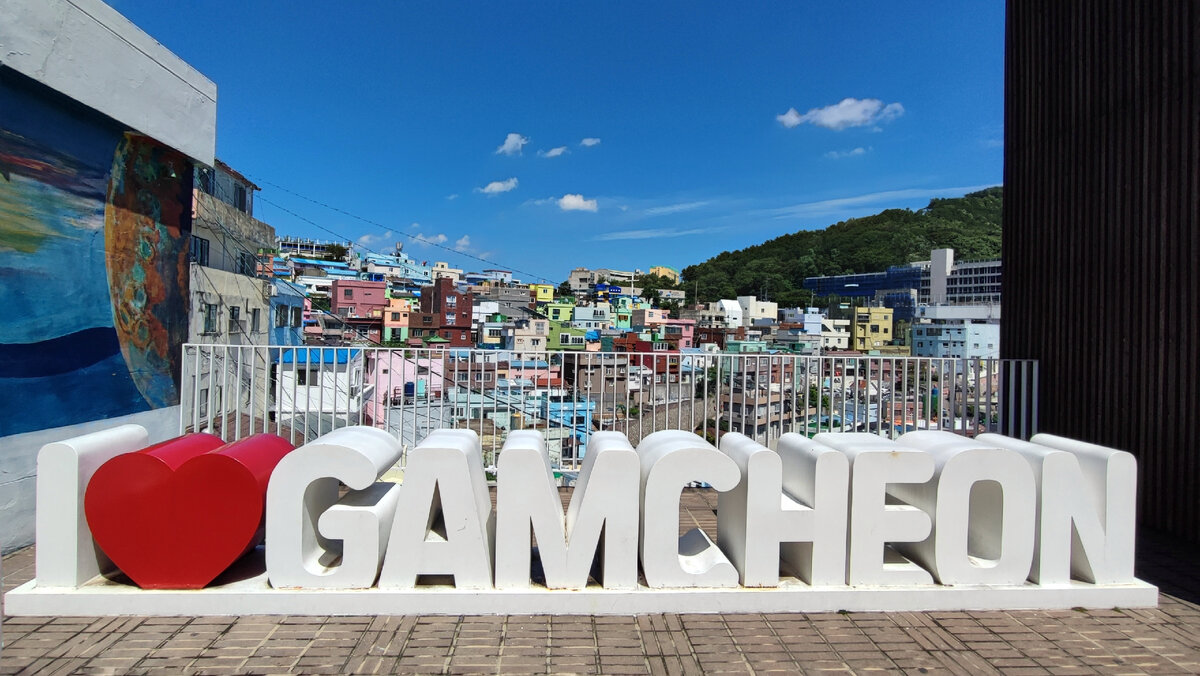 Составляя маршрут своей первой поездки в Южную Корею, в моих картах было множество отметок, среди которых достаточное количество приходилось на неизвестный мне тогда город Пусан. Единственное, что я знала - это то, что про него годом раньше сняли фильм про поезд и зомби, но сам город по-прежнему оставался загадкой. В ту поездку я посетила все основные достопримечательности, включая саму деревню, но когда впечатлений слишком много - они начинают путаться между собой и забываться. Спустя шесть лет, уже в четвертый раз приехав в Пусан, ставший за эти годы моим самым любимым городом, я решила еще раз добраться до некоторых мест, в которых уже была. И первым делом я доехала именно до деревни Камчхон. Сказать, что мне крайне сильно повезло с погодой, будет даже преуменьшением. Прошлое лето выдалось очень дождливым: в новостях то и дело рассказывали про оползни в горах, на телефон каждый день раз по тридцать приходили оповещения об опасностях из-за ветра и ливня, но именно в тот день ярко све