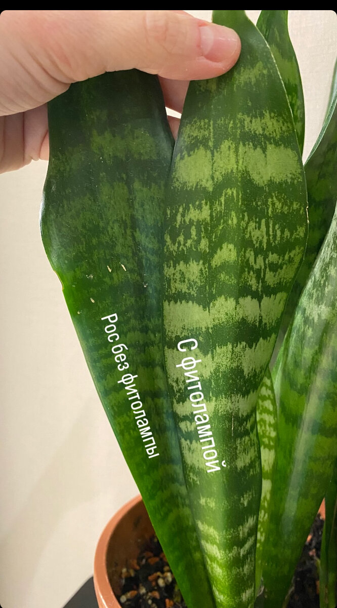 Наглядный пример на Сансевиерии. Бледные, скучные листья-цветок рос без дополнительного света. Под фитолампой листья не стали сильно вытягиваться и приобрели красивый окрас. Поверьте, если света будет достаточно, растения справится с болезнями и вредителями. Для того чтобы замерить освещённость в помещении есть специальный прибор – Люксометр. Замеряют освещённость конкретно в том месте, где будут стоять растения. Если света недостаточно, нужно организовать досветку. Растения подразделяют на третий типа светолюбиво сти: 1. Теневыносливые (500-1000люкс) 2. Умеренно – теневыносливые (1500-3000люкс) 3. Светолюбивые (3000-5000люкс) Какие растения есть у вас? Пишите и я подскажу какую освещённость нужно выбрать для вашего растения.
