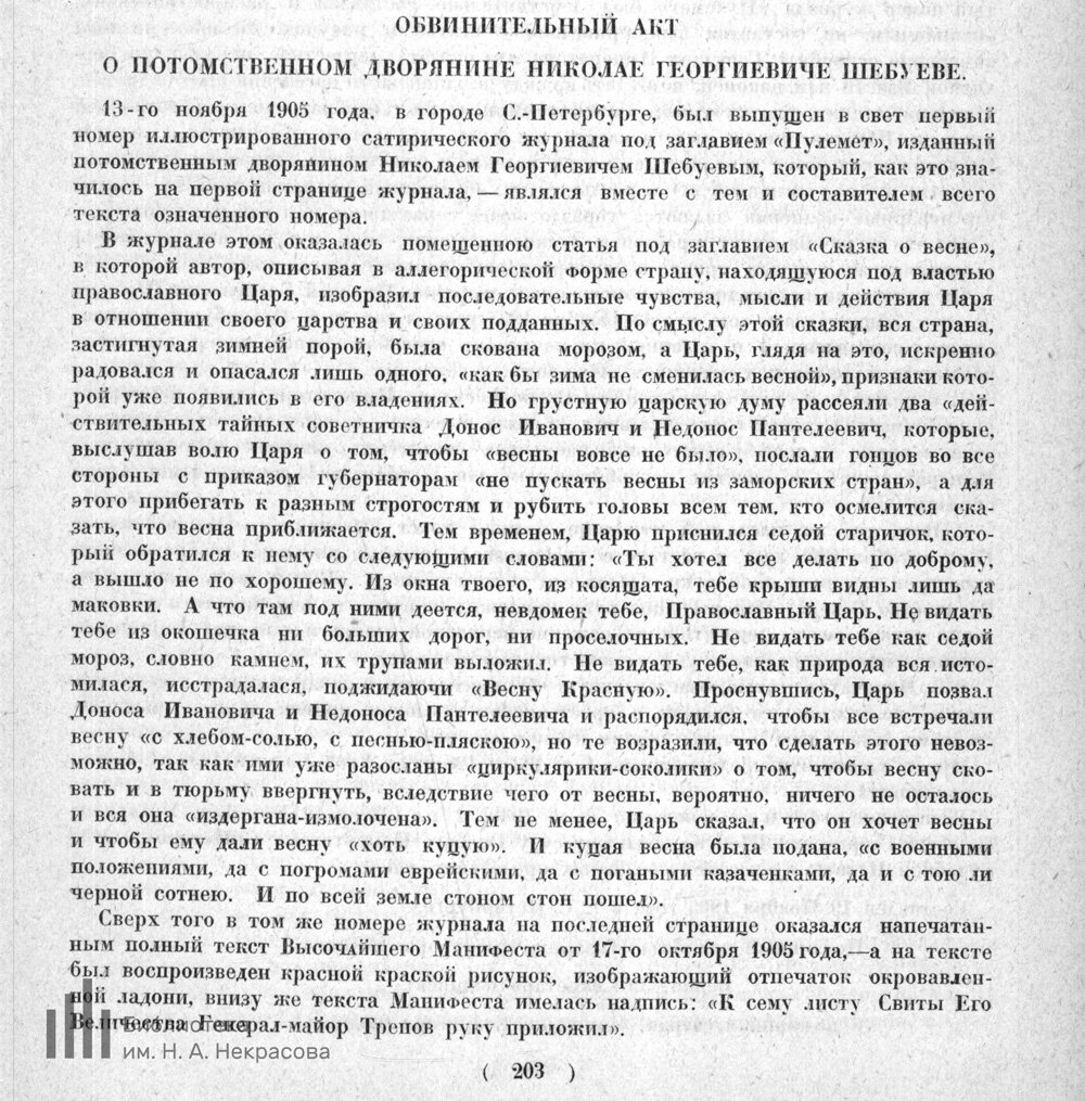 В далёком 1987 году, я будучи в Ленинграде в гостях у своего дяди нашёл у него на полках с разной букинистикой старый потрёпанный журнальчик по виду очень напоминающий Крокодил по размеру и качеству бумаги и с удивлением прочёл его название Пулемёт и год издания 1905. Зачитался и поразился. Нам рассказывали в школе, что при царях была цензура и запрещалось практически всё. Но этот журнал поносил царя Николашку и всю его власть последними словами, да так бесстрашно , что даже в глубоко перестроечном 1987 году ни одно издание СССР не позволяло в адрес КПСС и Советской власти. Сейчас нашёл сведения, что его издатель всё же понёс наказание.