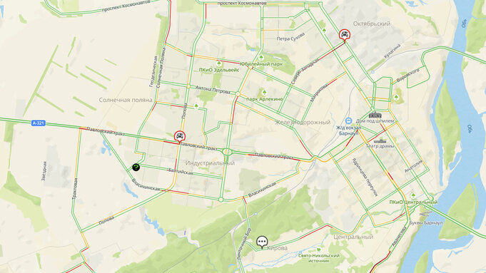 Движение затруднено по всему городу Пробки на дорогах Барнаула утром вторника достигли 9 баллов, следует из данных 2ГИС. По состоянию на 08:12, движение особенно затруднено по Павловскому и Змеиногорскому трактам. Также крупные заторы наблюдаются на улицах Солнечная Поляна, Власихинской, Юрина, Малахова, Северо-Западной, Матросова, Советской Армии, Молодежной, Кутузова и ряде других. Медленно транспорт движется в том числе и по проспекту Строителей на участке от выезда с парковки ТРЦ Galaxy до пересечения с Красноармейским. По прогнозу синоптиков, днем 27 февраля в Барнауле ожидается до 9 градусов мороза, преимущественно без осадков. На некоторых участках дорог сохранится гололедица. Больше материалов на amic.ru.
