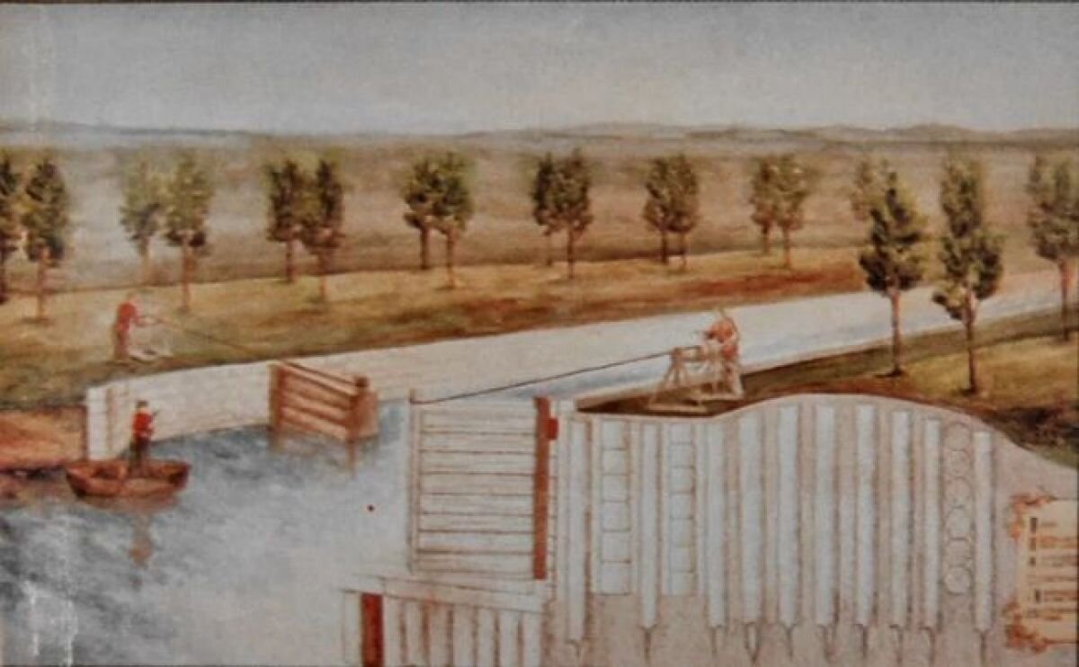 В 1696 году Россия захватила турецкую крепость Азов и получила выход к Черному морю. Однако прямого водного пути к морю из центра страны не было. Тогда царь Петр Алексеевич увлекся идеей создания судоходного канала между Доном и Окой. Центром гидрологических работ стало Иван-озеро (ныне - Шатское водохранилище, 30 км севернее Епифани), из которого, как тогда думали, вытекали реки Дон и Шат. По заданию Петра английский инженер Джон Перри приступил к сооружению канала. К весне 1702 года заготовлены необходимые материалы, мобилизовано более 20 тыс. человек. Работа предстоит большая и спешная. Сначала было очищено и углублено Иван-озеро. Затем приступили к устройству канала шириной 12 саженей (около 25 метров) и глубиной 2 аршина (1,5 метра). Землю, вынутую из прокопа, укладывали по сторонам, возводя крепкие дамбы, которые по бокам укрепляли сваями и бревнами, чтобы изолировать канал от болотистой местности. Для прочности на них в два ряда высаживали деревья. Уровень воды в реках Шат, Упа